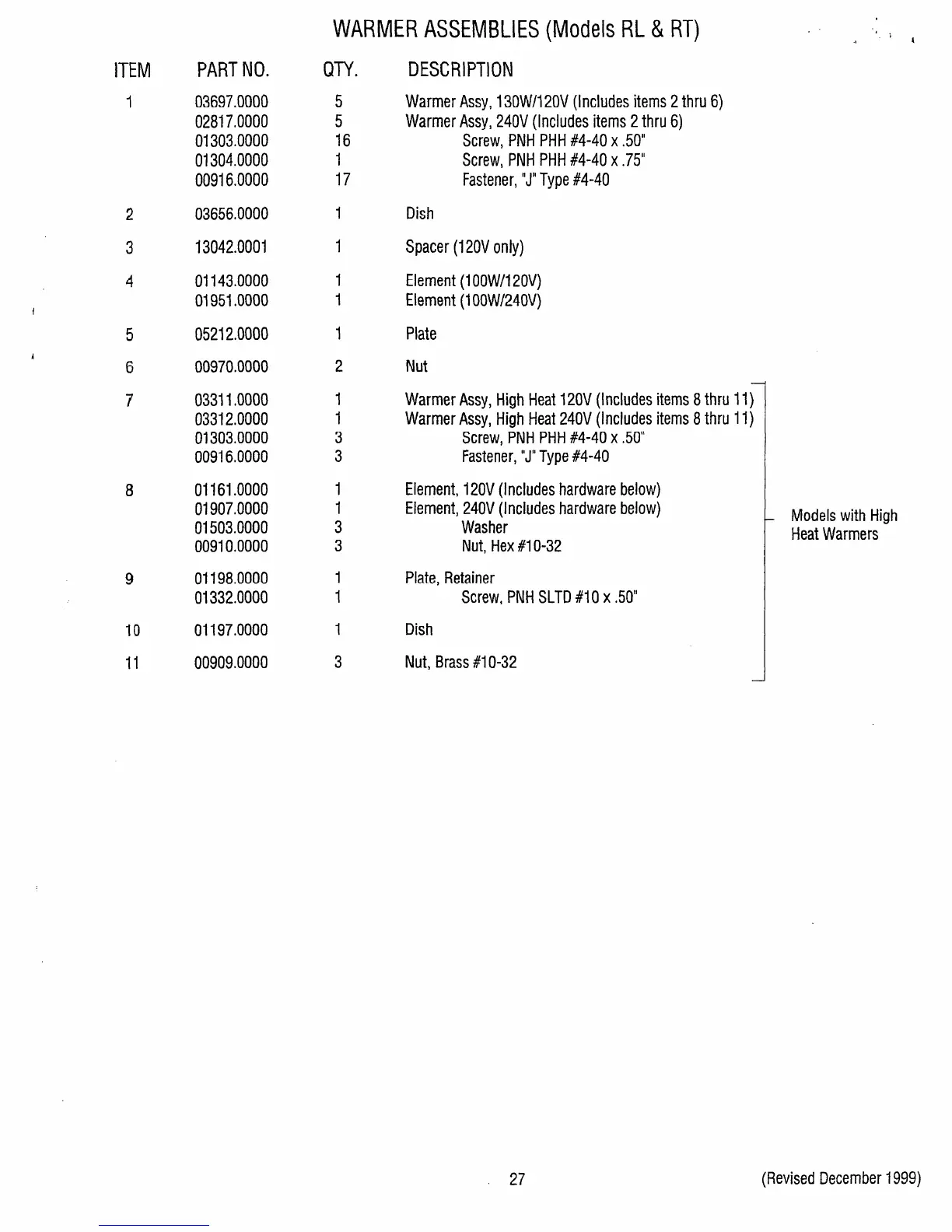 Warmer Assy, High Heat120V(Includesitems 8thru