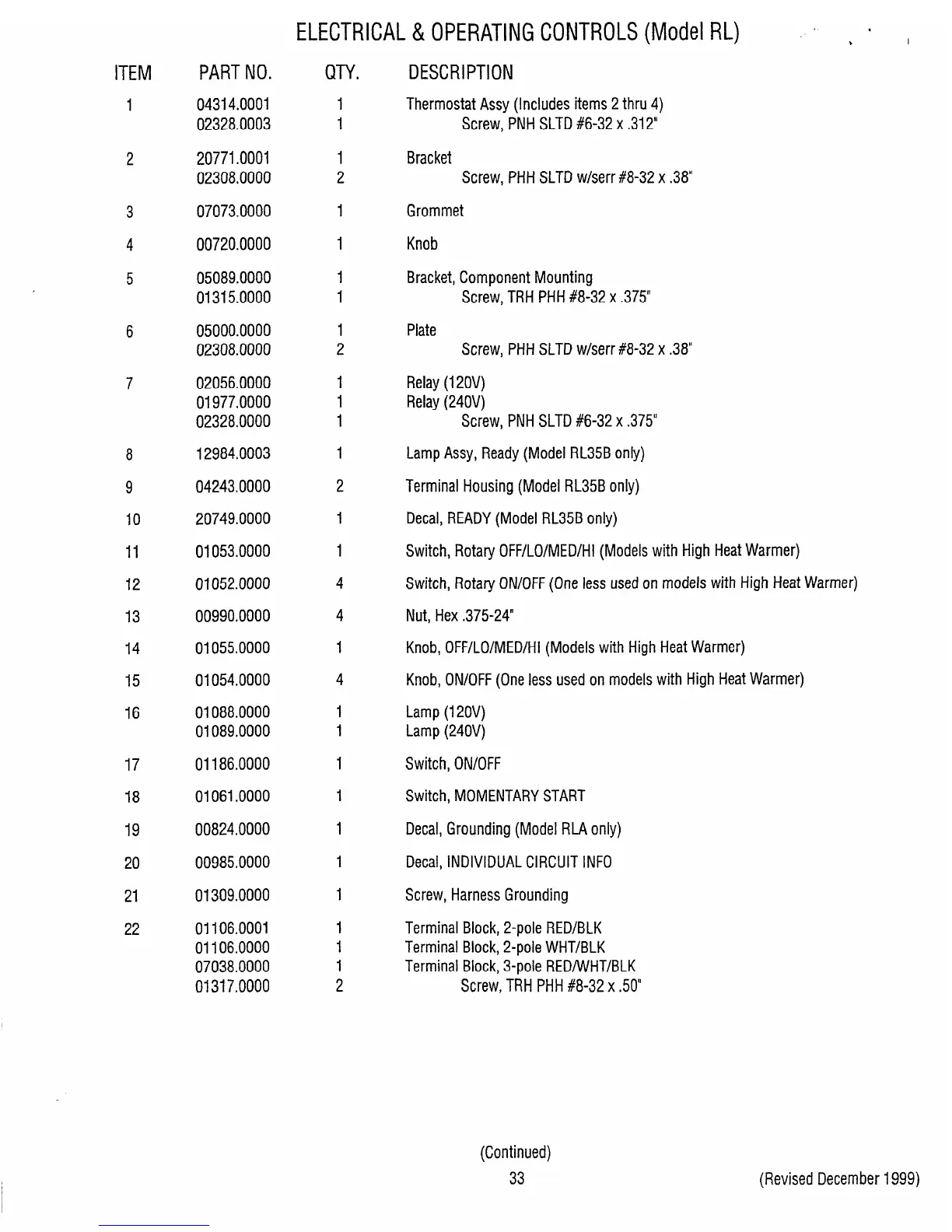 ELECTRlCAL&OPERATlNGCONTROLS(ModelRL) ' , 1 ,