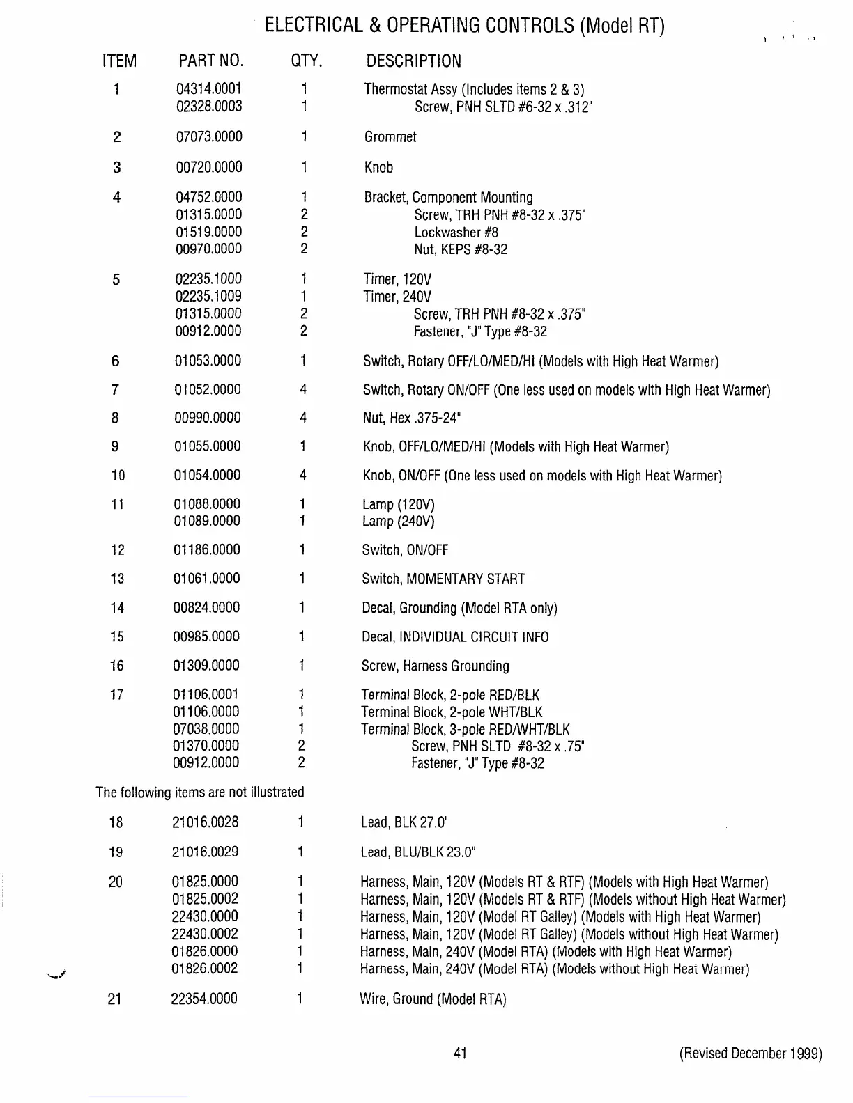 ELECTRICAL &OPERATING CONTROLS(ModelRT)
