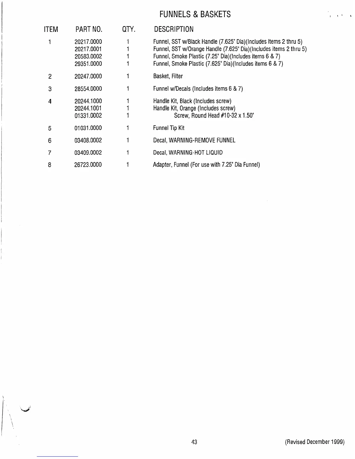 Funnel, SST w/Black Handle (7.625” Dia)(lncludes items 2 thru 5)