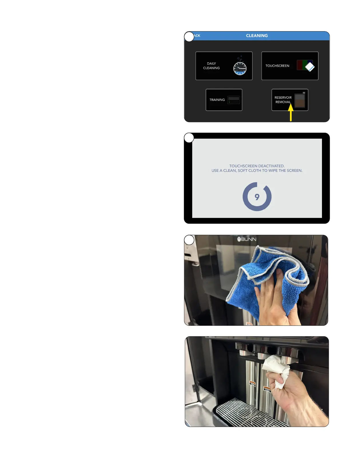 3. Clean the touchscreen using cloth provided