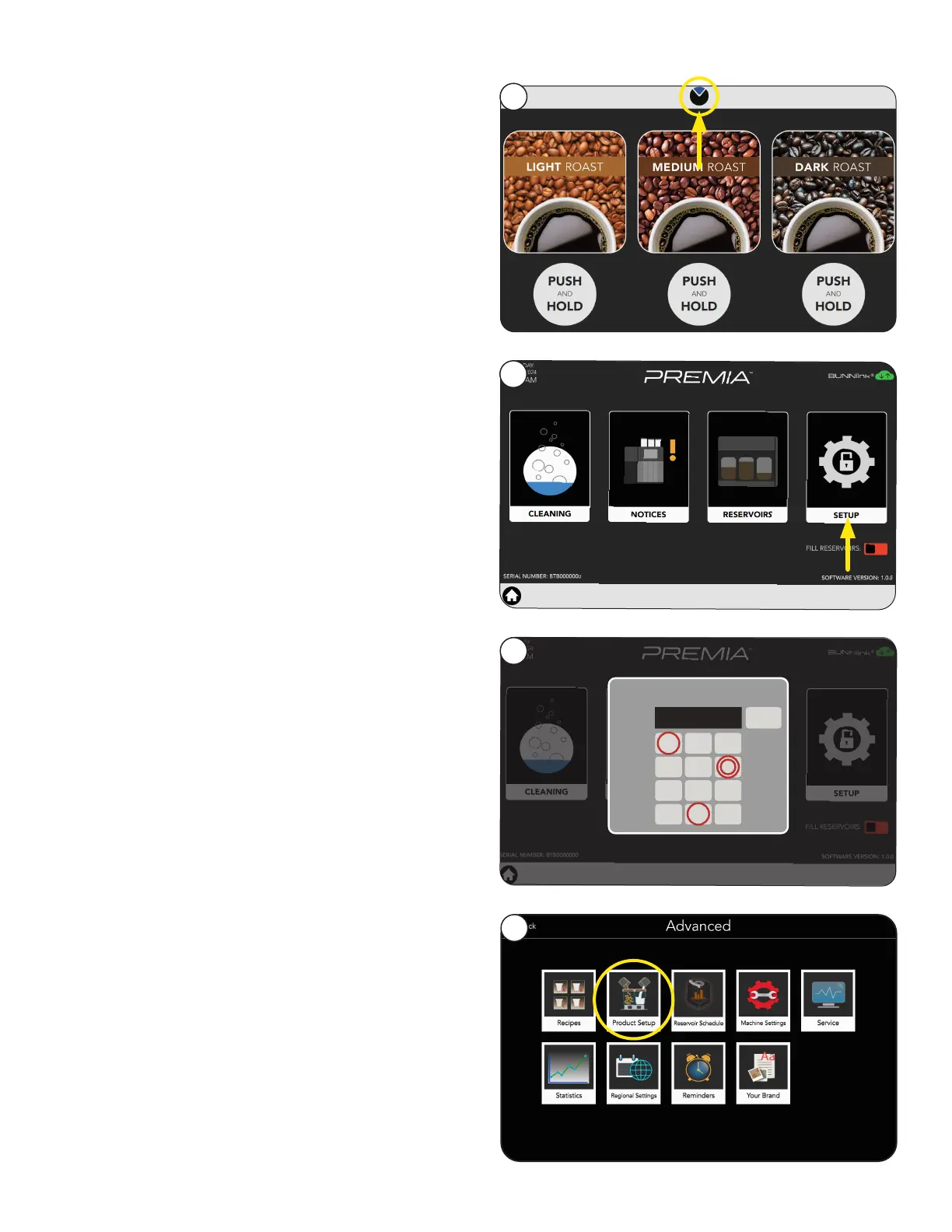1. Touch and hold the BUNN logo for a few