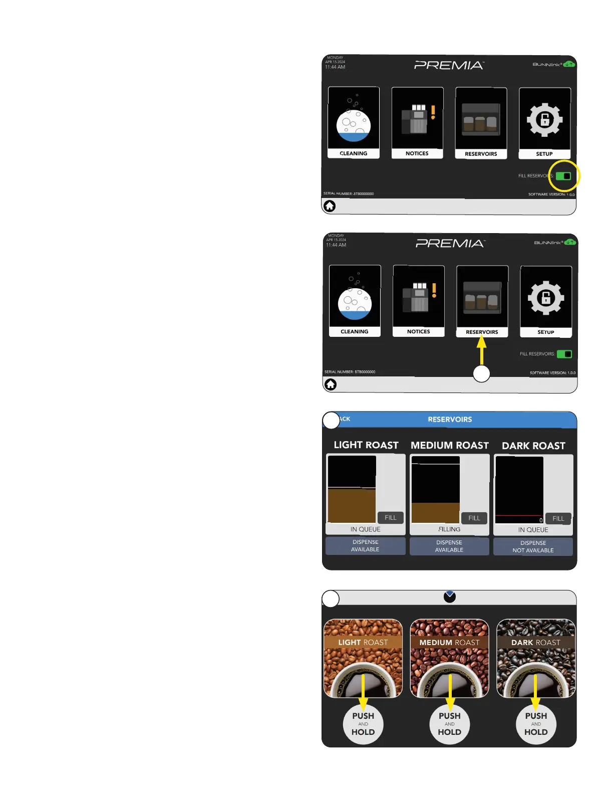 2. Select the Fill RESERVOIRS button.