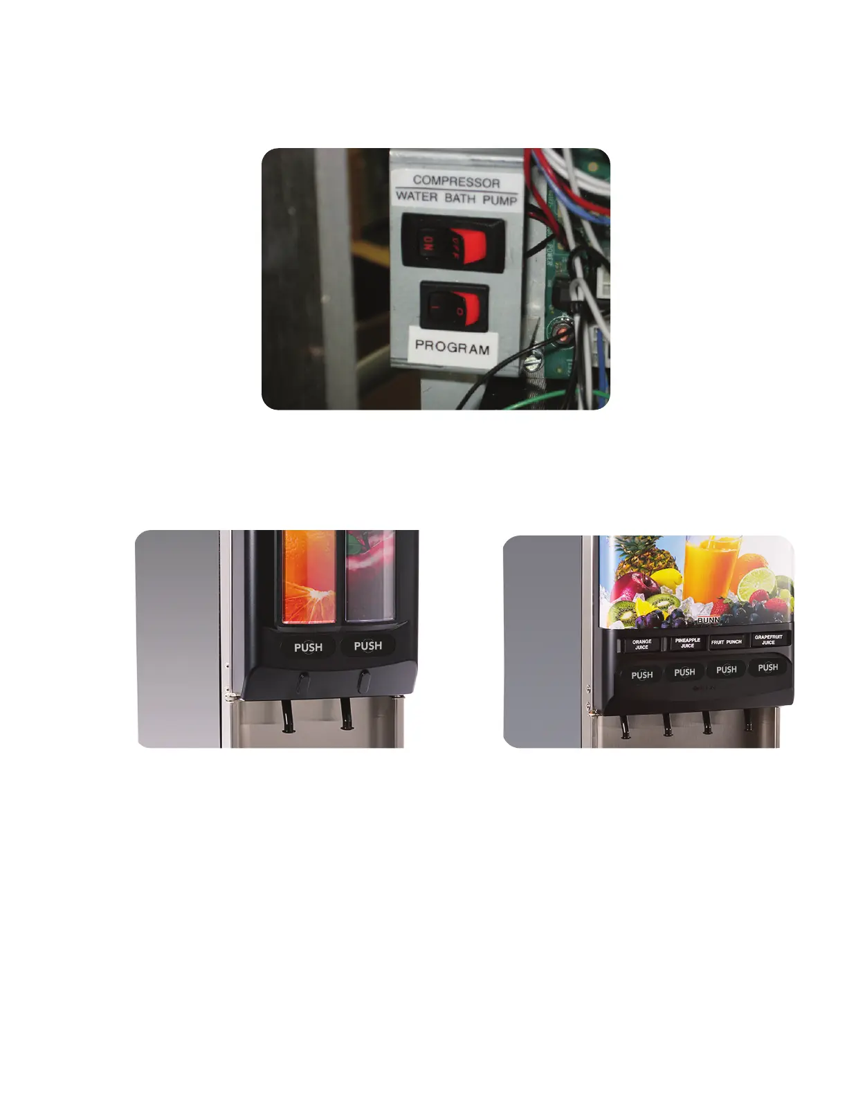 holding dispense switch (labeled PUSH) will initiate product flow from the respective nozzle;