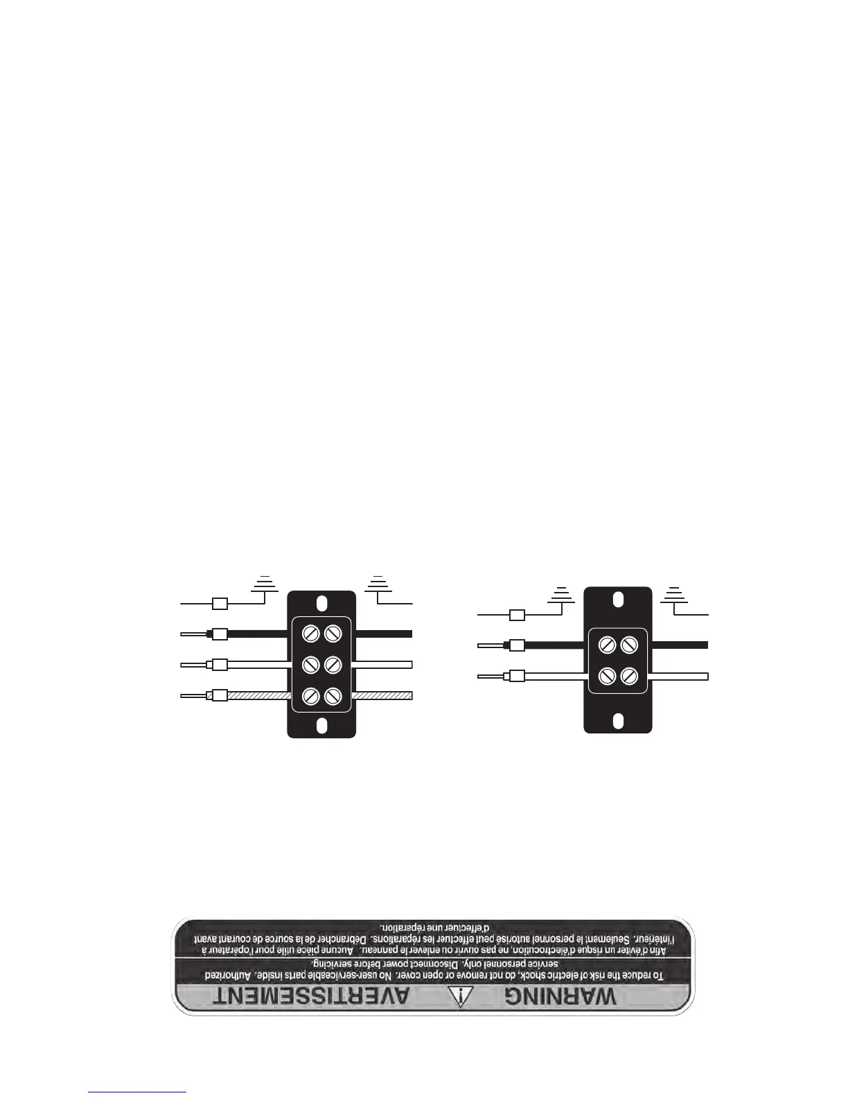 MISE EN GARDE : Les raccordements électriques doivent être faits comme spécifié ci-dessus. L’inobservation