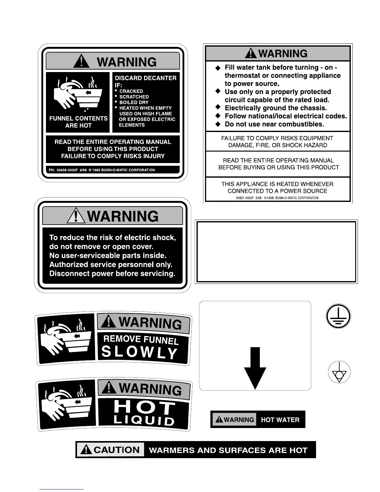 The notices on this brewer should be kept in good condition. Replace unreadable or damaged labels.