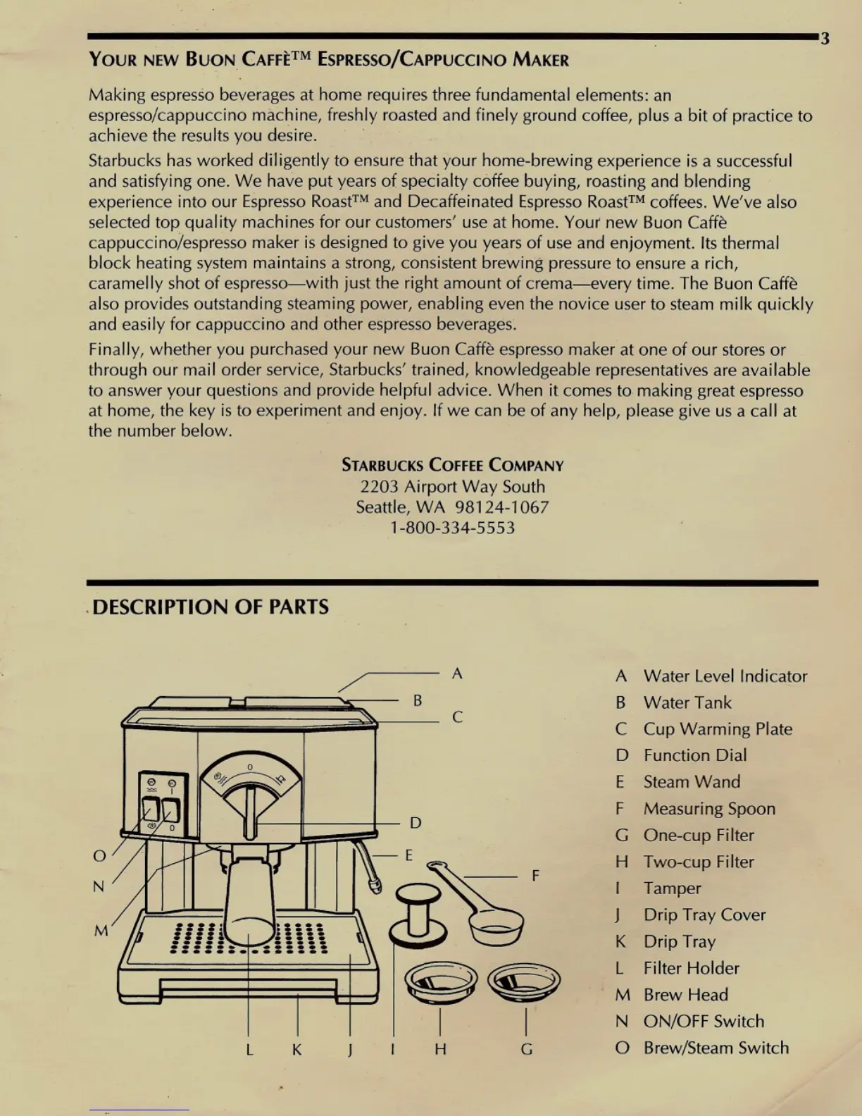 YOUR NEW BUON CAFFE™ ESPRESSO/CAPPUCCINO MAKER