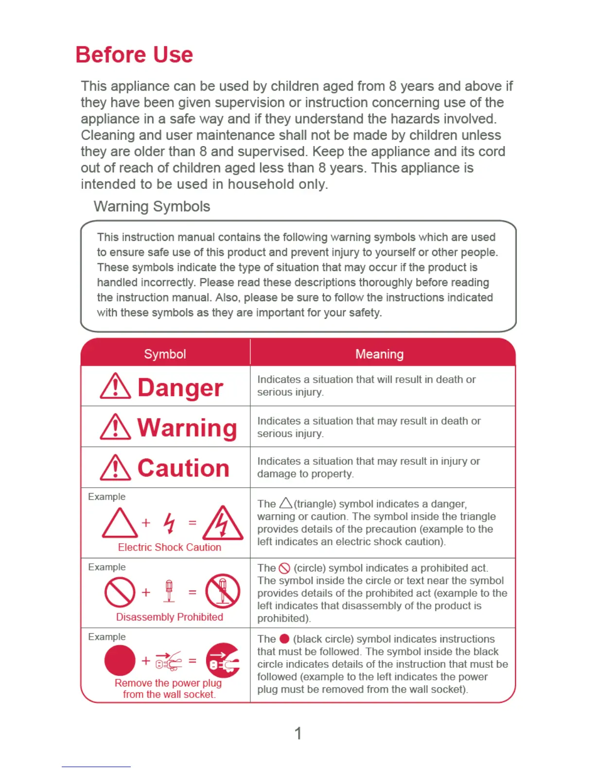 Buono V60 - Before Use; Warning Symbols