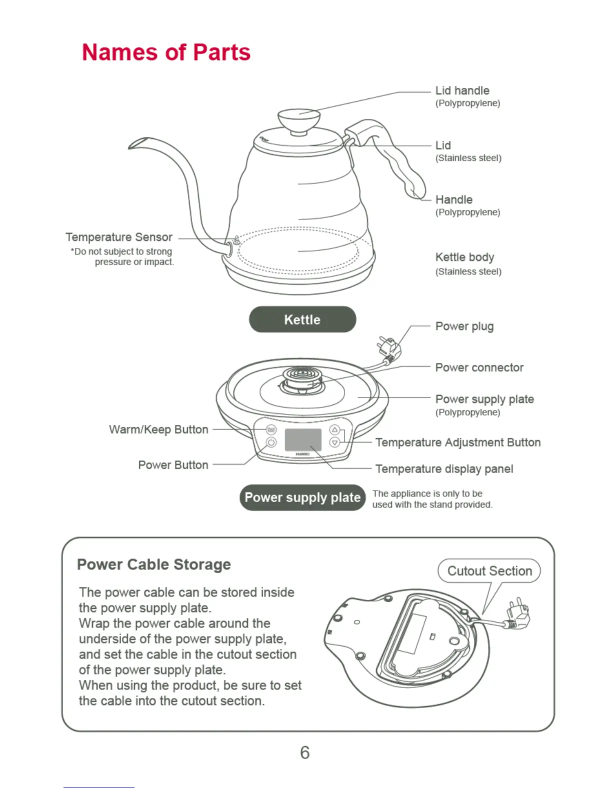 Buono V60 - Names of Parts; Power Cable Storage