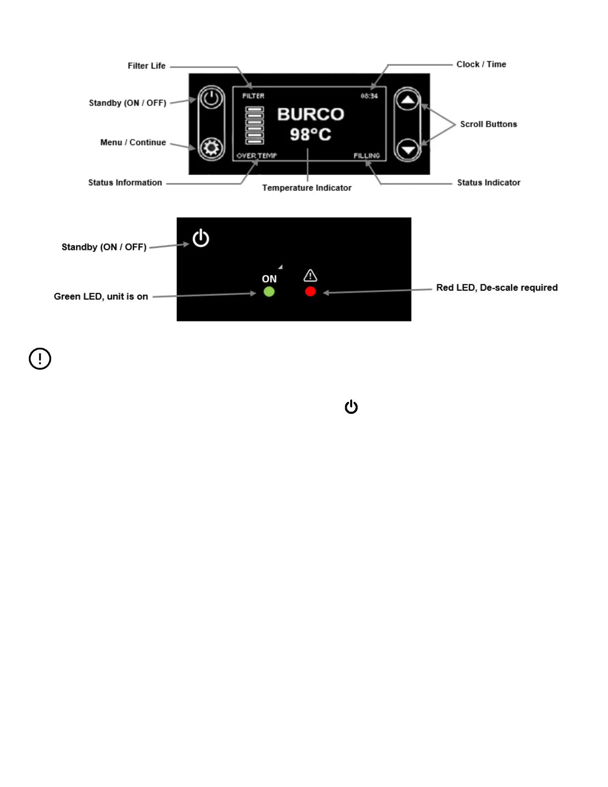 • Ensure boiler is set to 98˚C, fully drain the boiler contents from the tap and repeat. Boiler should