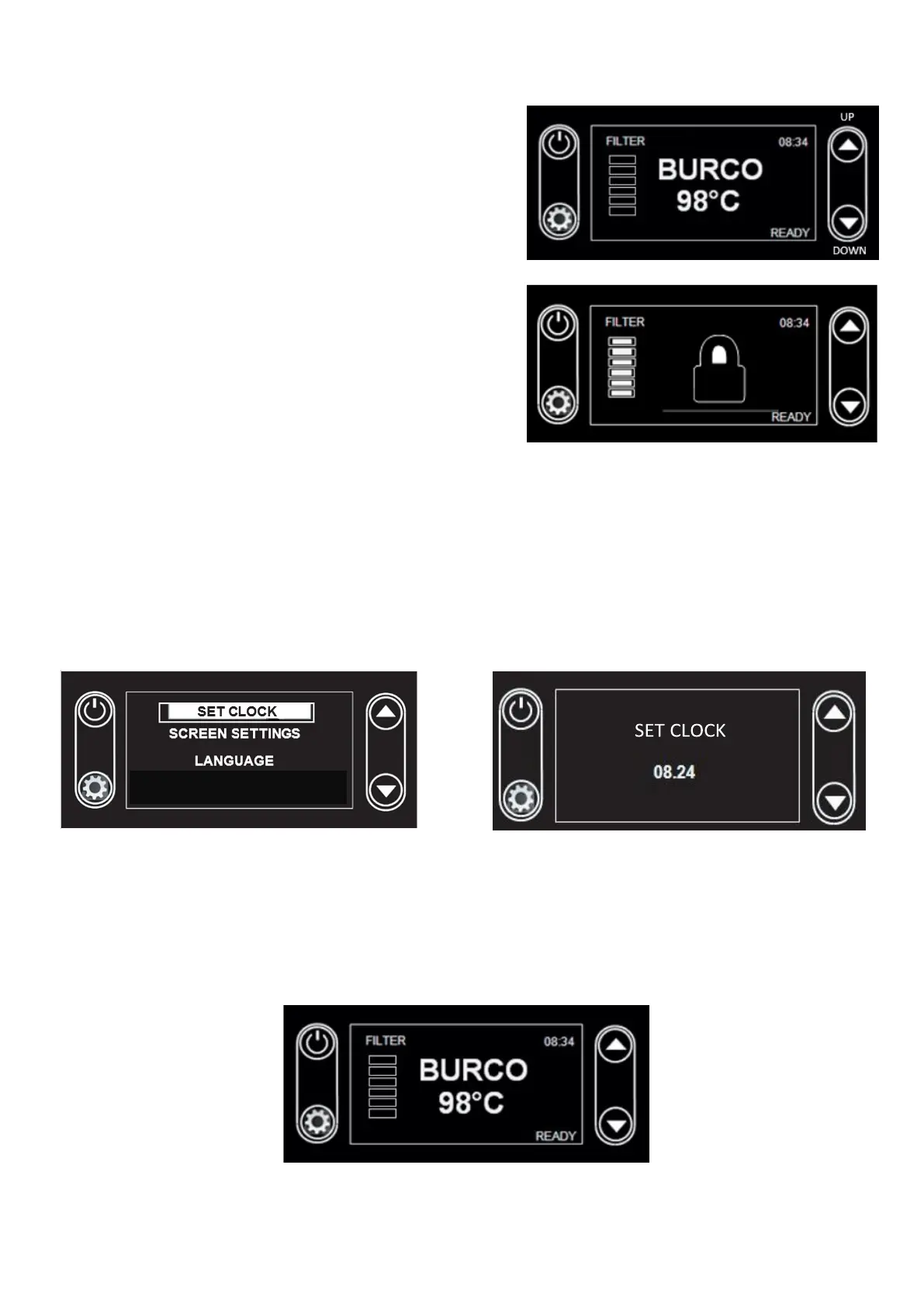 Press MENU, SET CLOCK will be highlighted. Press MENU to enter the SET CLOCK menu. The time will be