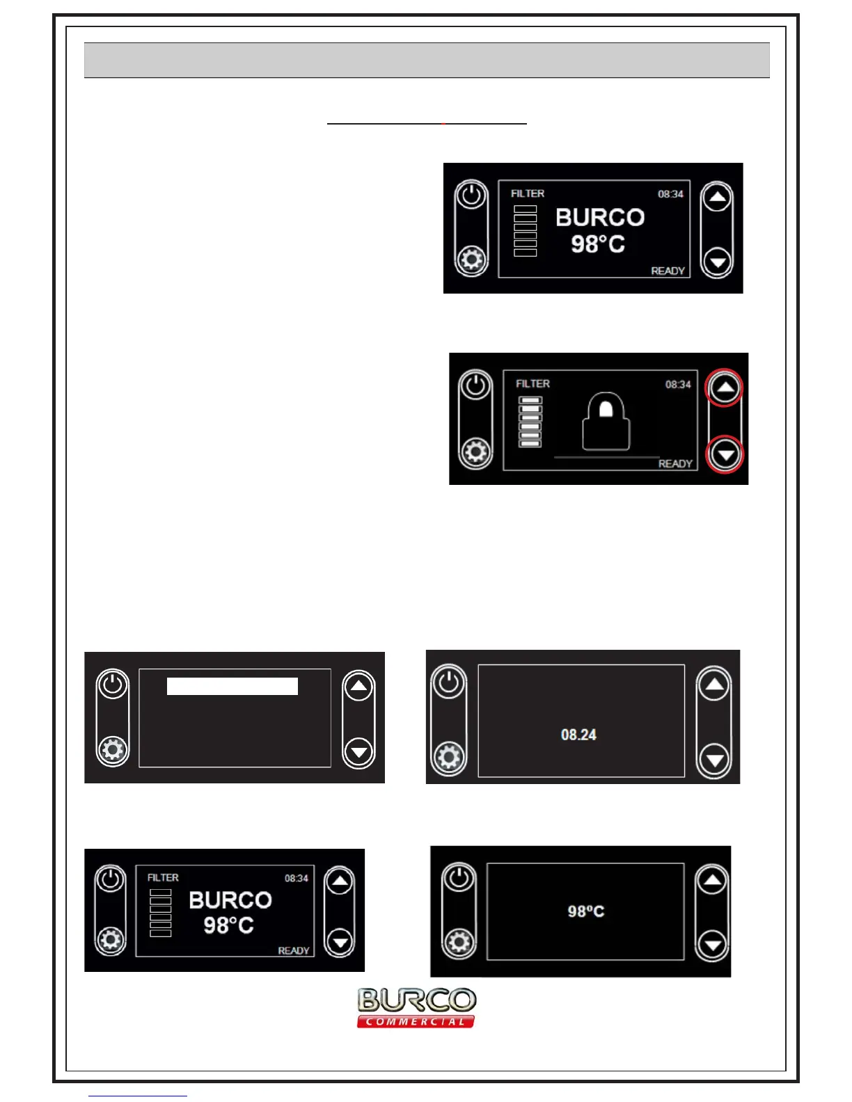 arrows to adjust to required temp.