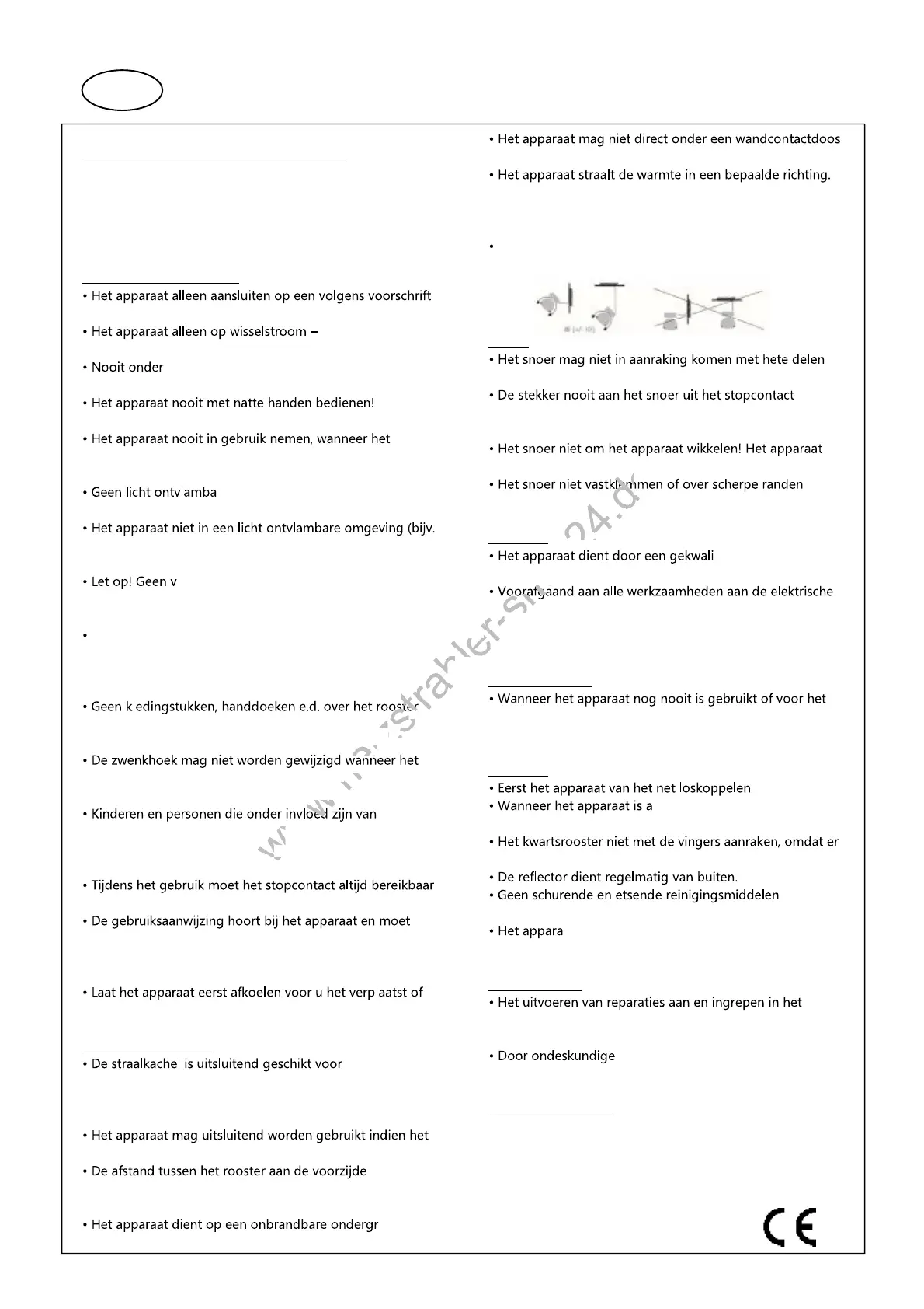 op een hoogte van min. 2,1 m (2000W) boven de vloer te