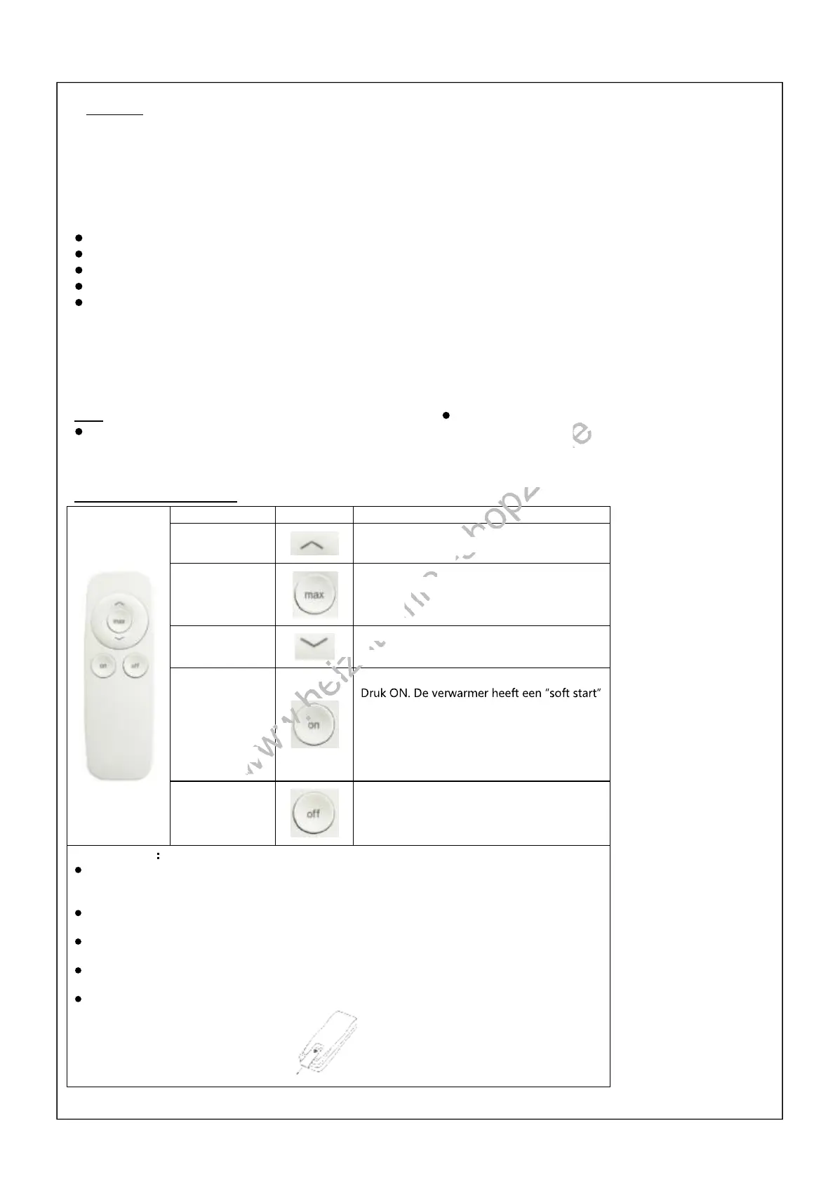 De verwarmer kan nog altijd gebruikt worden ook als de afstandsbediening niet werkt of verloren is.