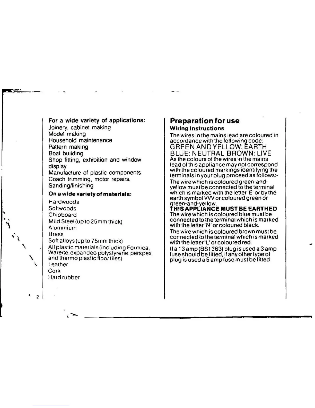 plug is used a 5 amp fuse must be fitted