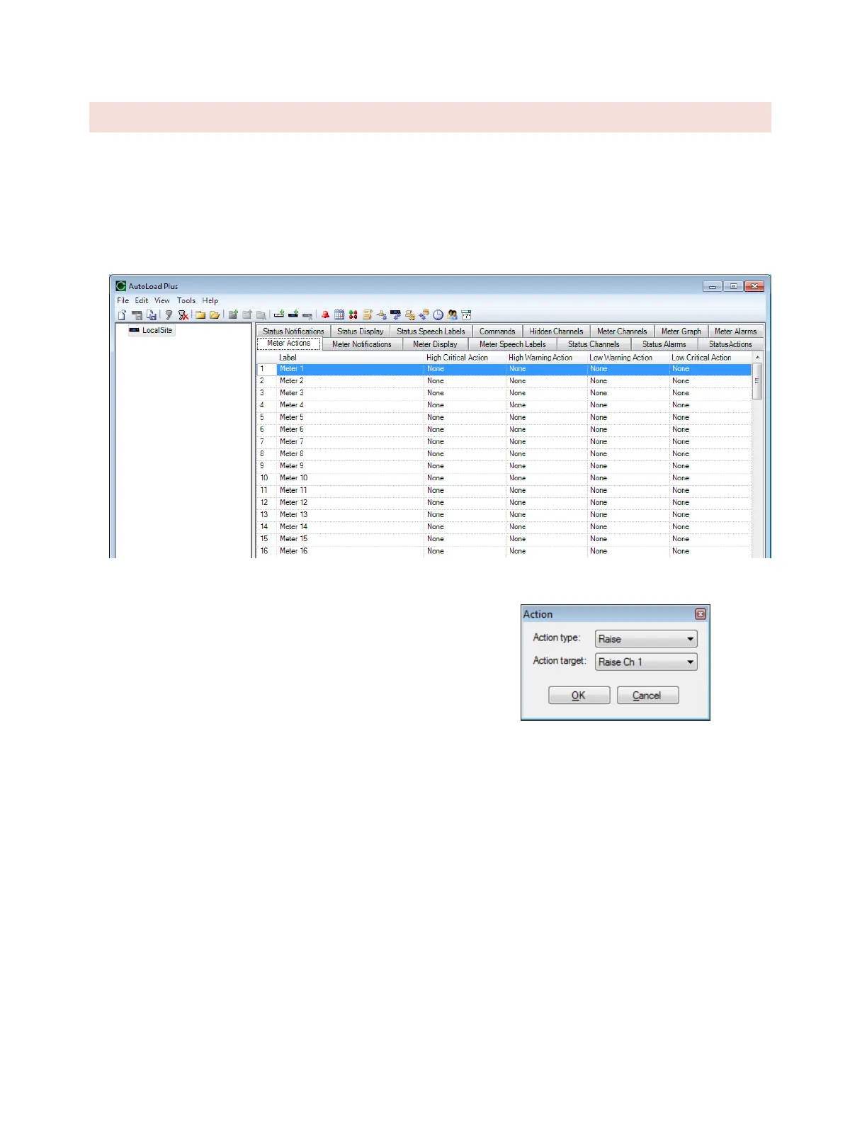 Meter Actions instruct the ARC Plus to automatically issue a command or run/stop a macro when a meter channel