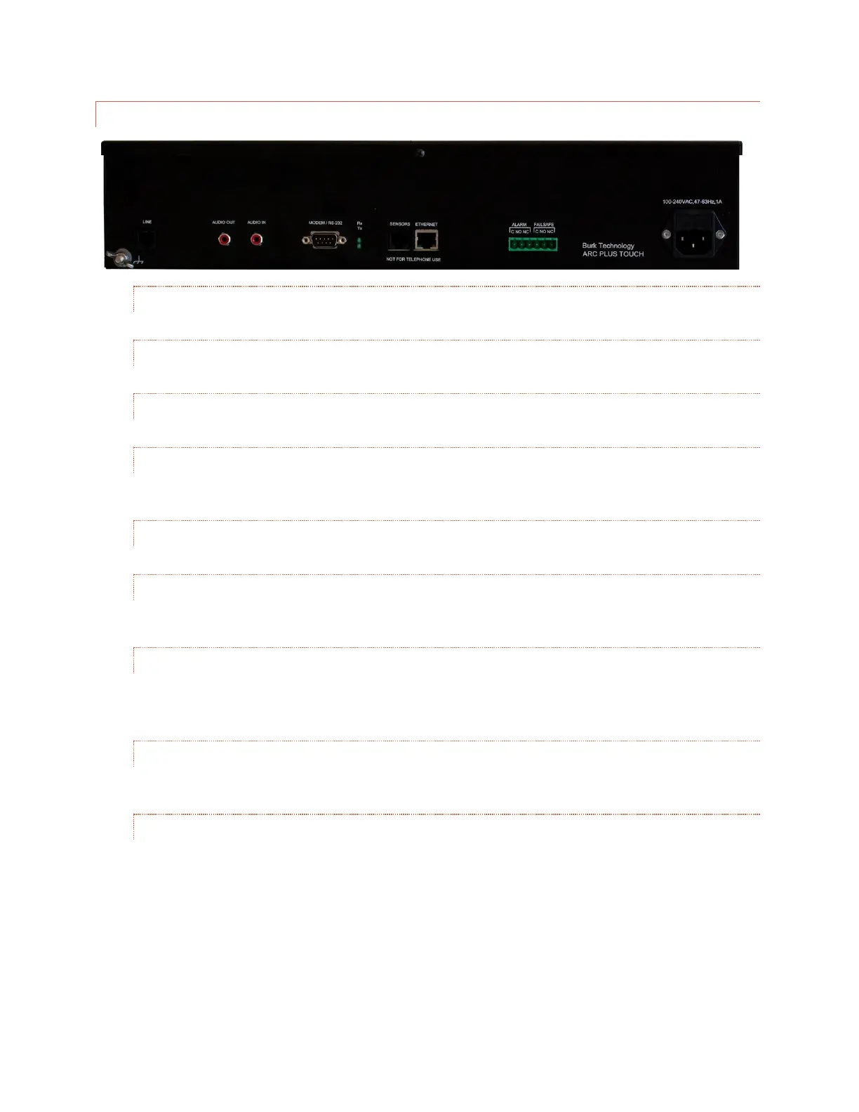 The Ethernet jack connects the ARC Plus Touch to the LAN/WAN for communications with the user as well