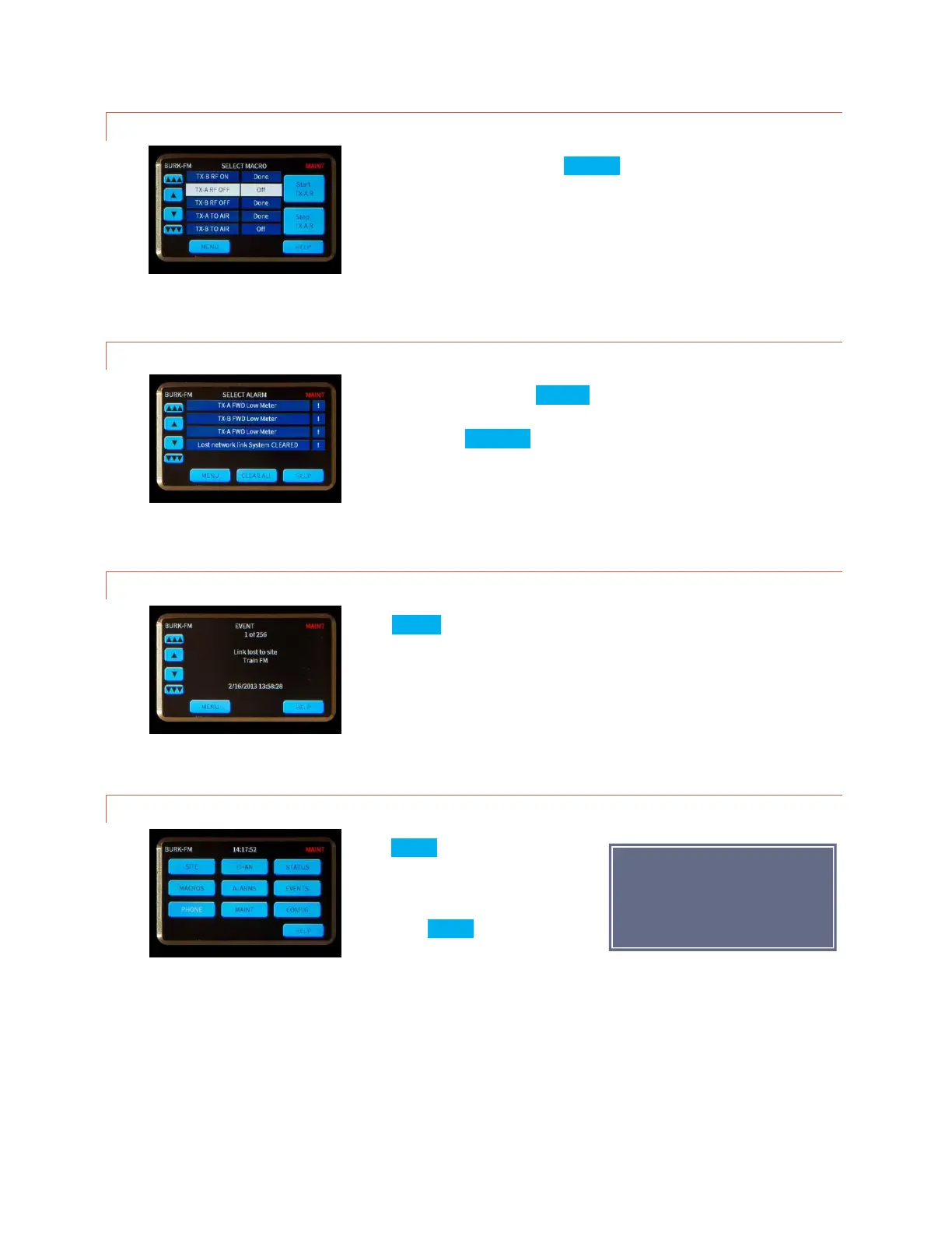 Macros are available by pressing MACROS on the main menu. Scroll through