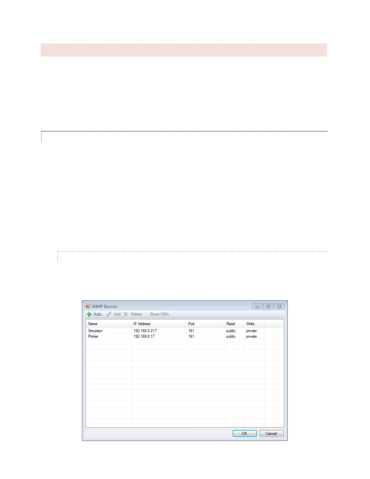 select SNMP devices… from the Edit menu. The SNMP Devices dialog box will be displayed as shown below.
