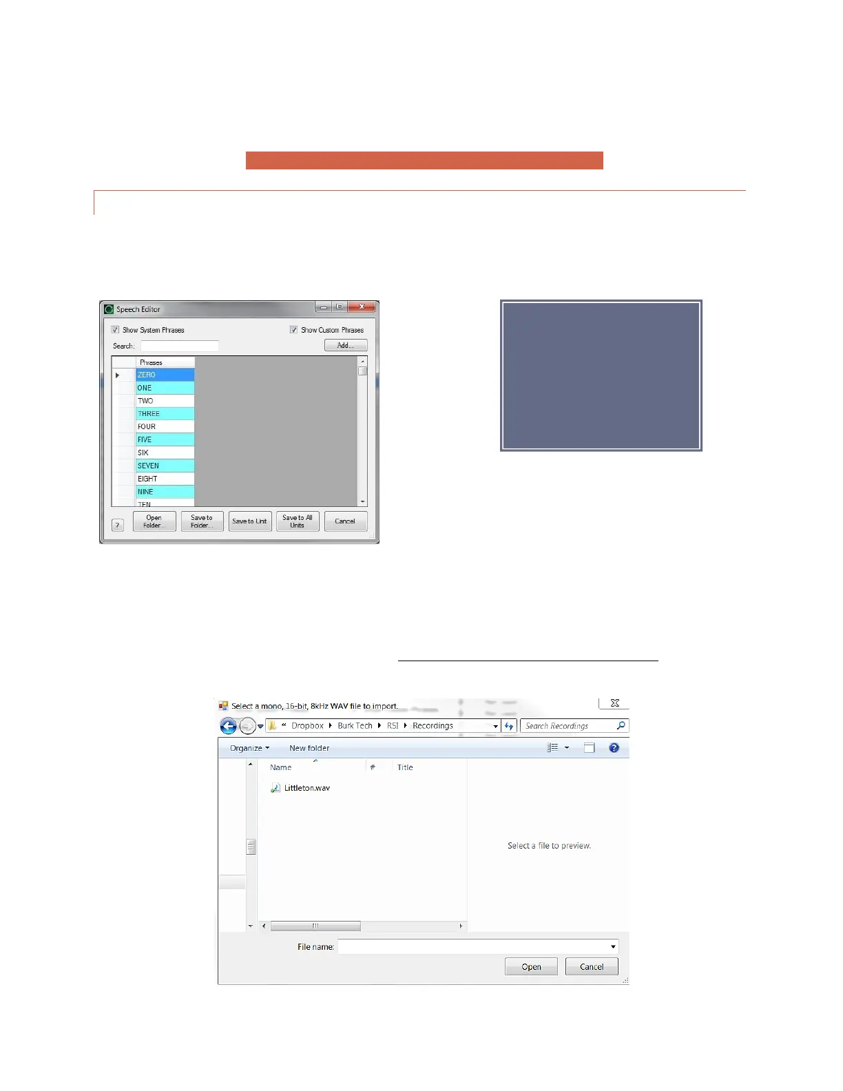 To add a recorded phrase, press the Add button. The Select a mono, 16-bit, 8kHz WAV file to import dialog box will