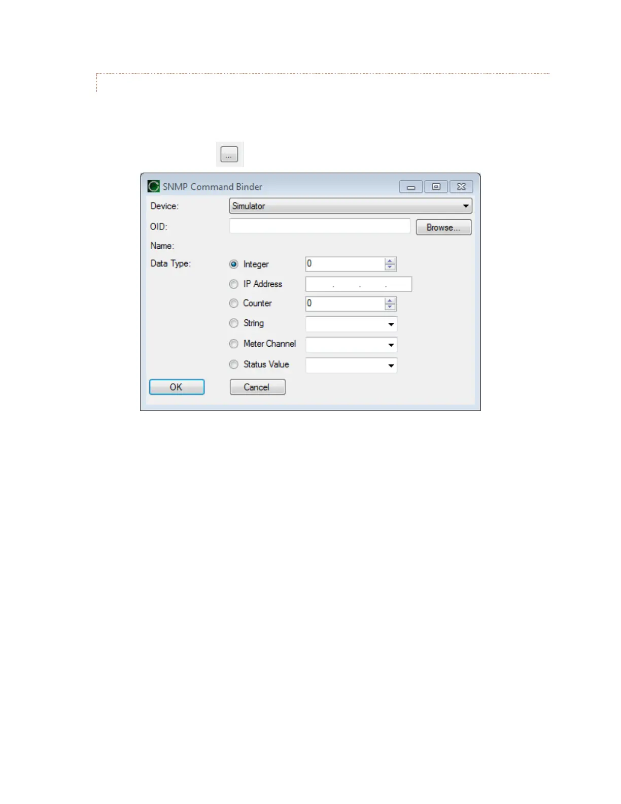 the corresponding dot box: The SNMP Command Binder window will be displayed.