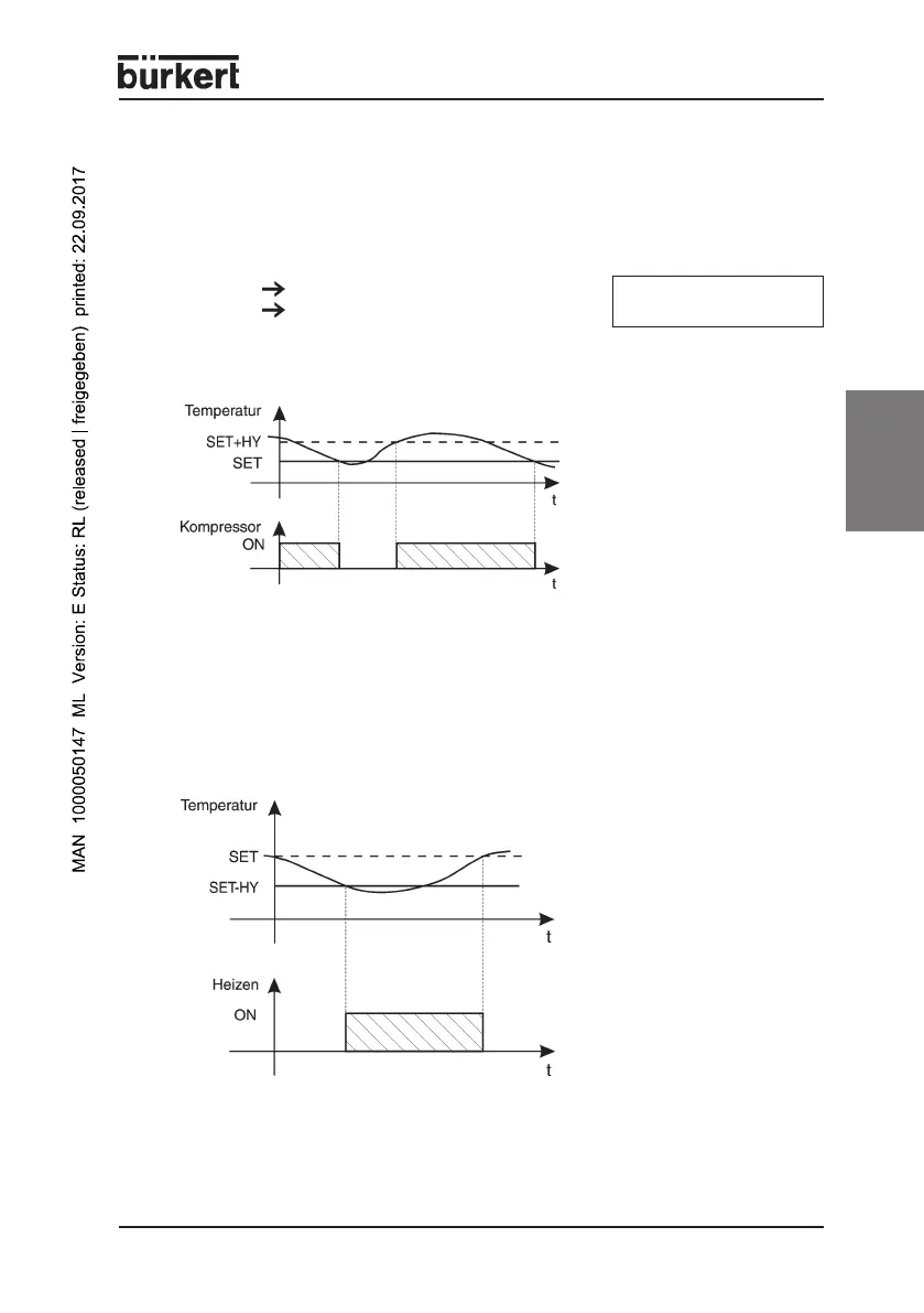 Überschreitet die Temperatur den Wert SET + HY, wird der Kompressor einge-