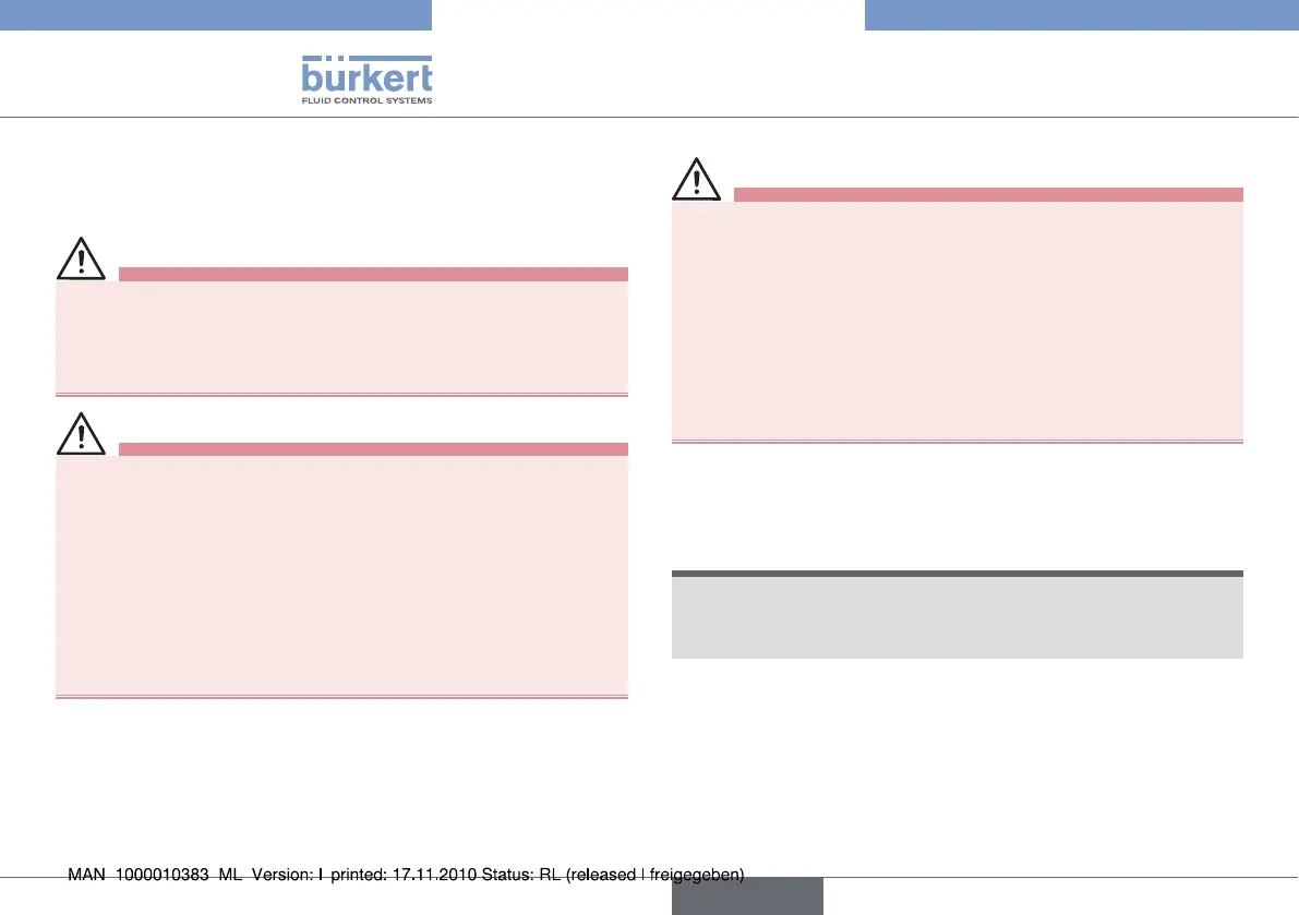 Eviter toute projection de fluide à l'intérieur de l'actionneur.•