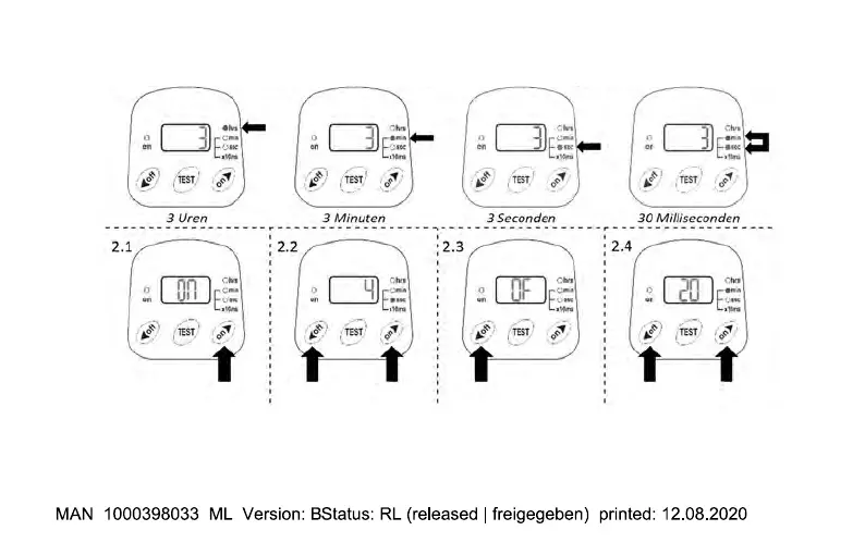 De ingestelde tijdseenheden wordt getoond door het LED’s aan de rechterzijde van het display.