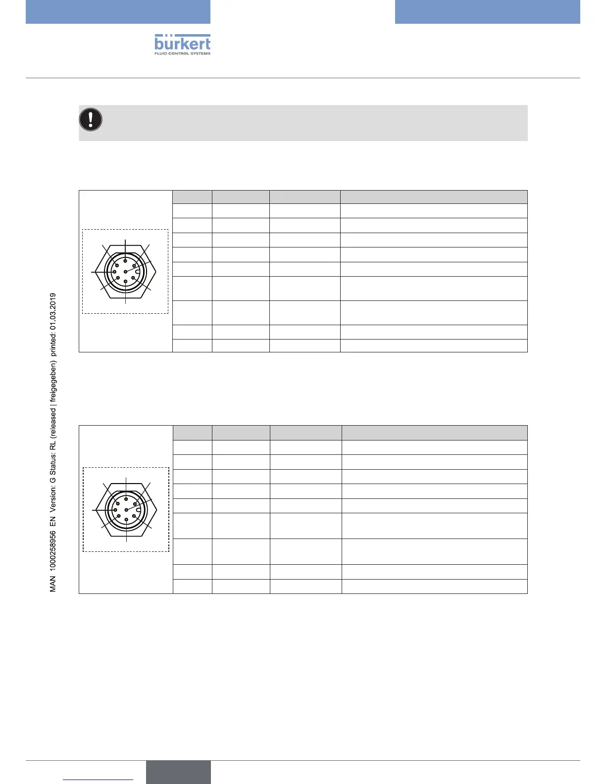 7.2.1 Pin assignment for the on-off valve, circular connector