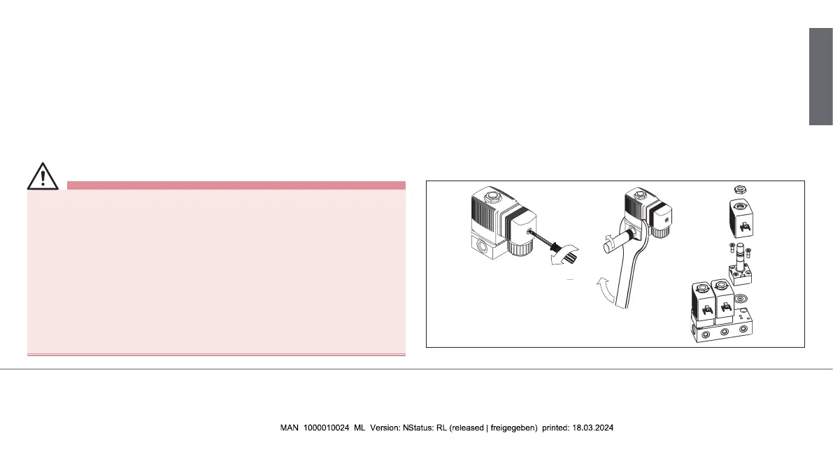 ▶ Before working on equipment or device, switch o the pressure