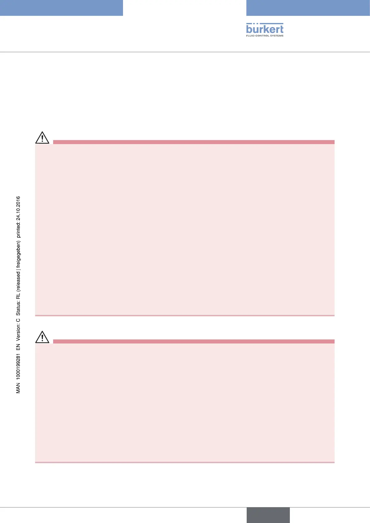 ▶ Stop the circulation of fluid, cut off the pressure and drain the pipe before loosening the process connections.