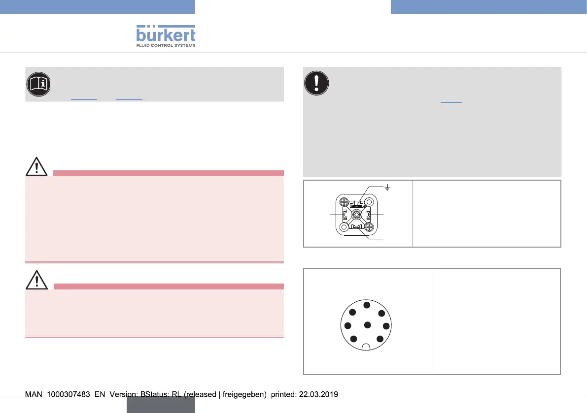 Fig. 25 : Allocation of the pins on the M12, 8-pin fixed connector