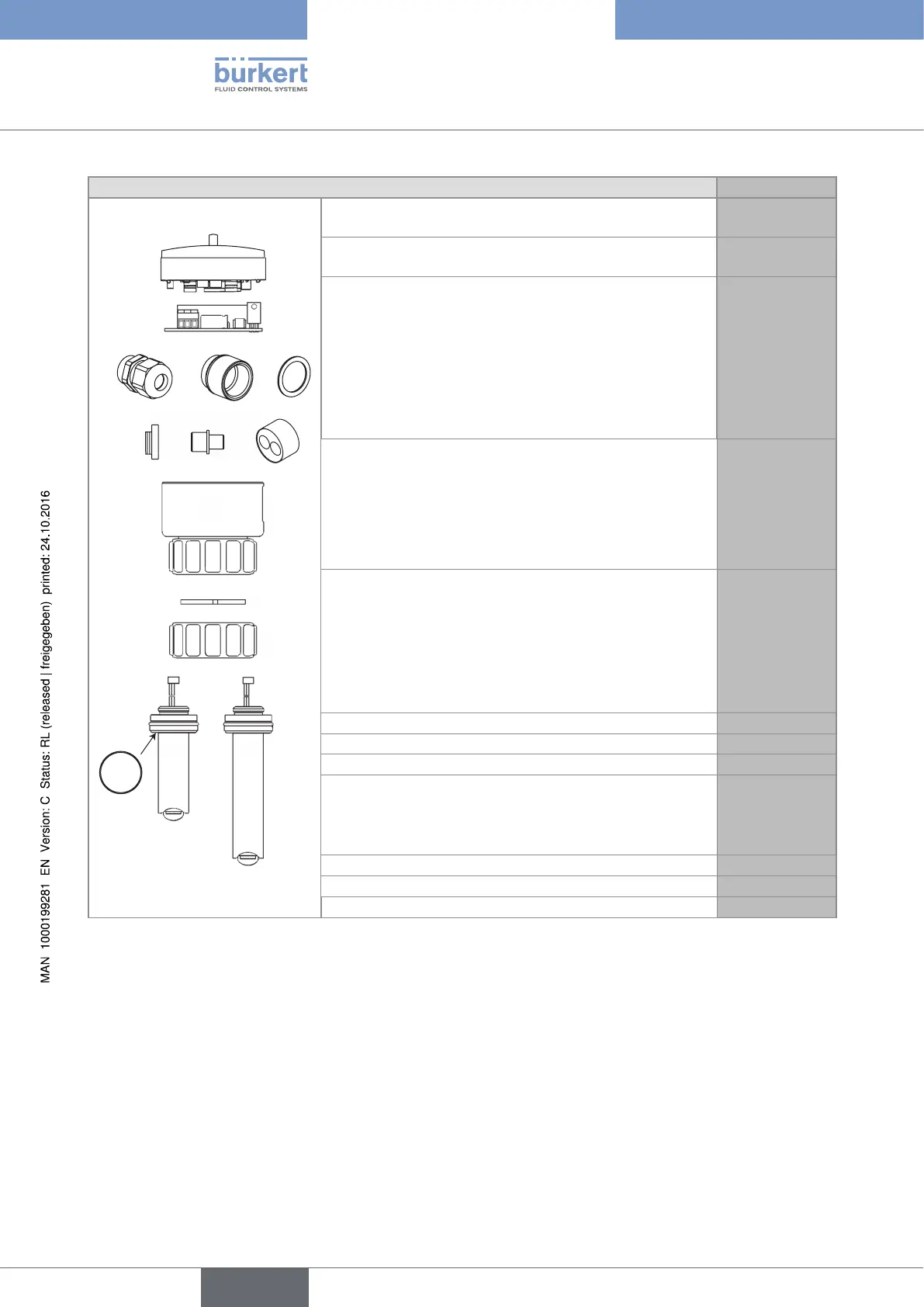 • one multiway seal, 2x6 mm, for cable gland (position 8)