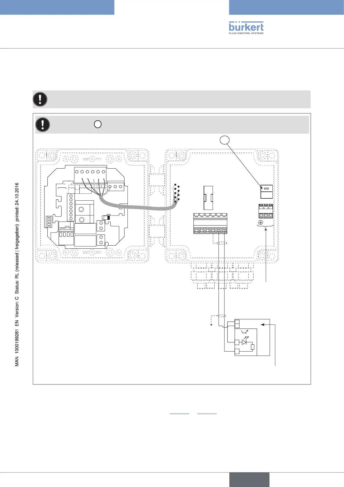 Fig. 36 : NPN wiring of the DO1 transistor output of a 8025 Batch in wall-mounted version, fed with 115/230 V AC