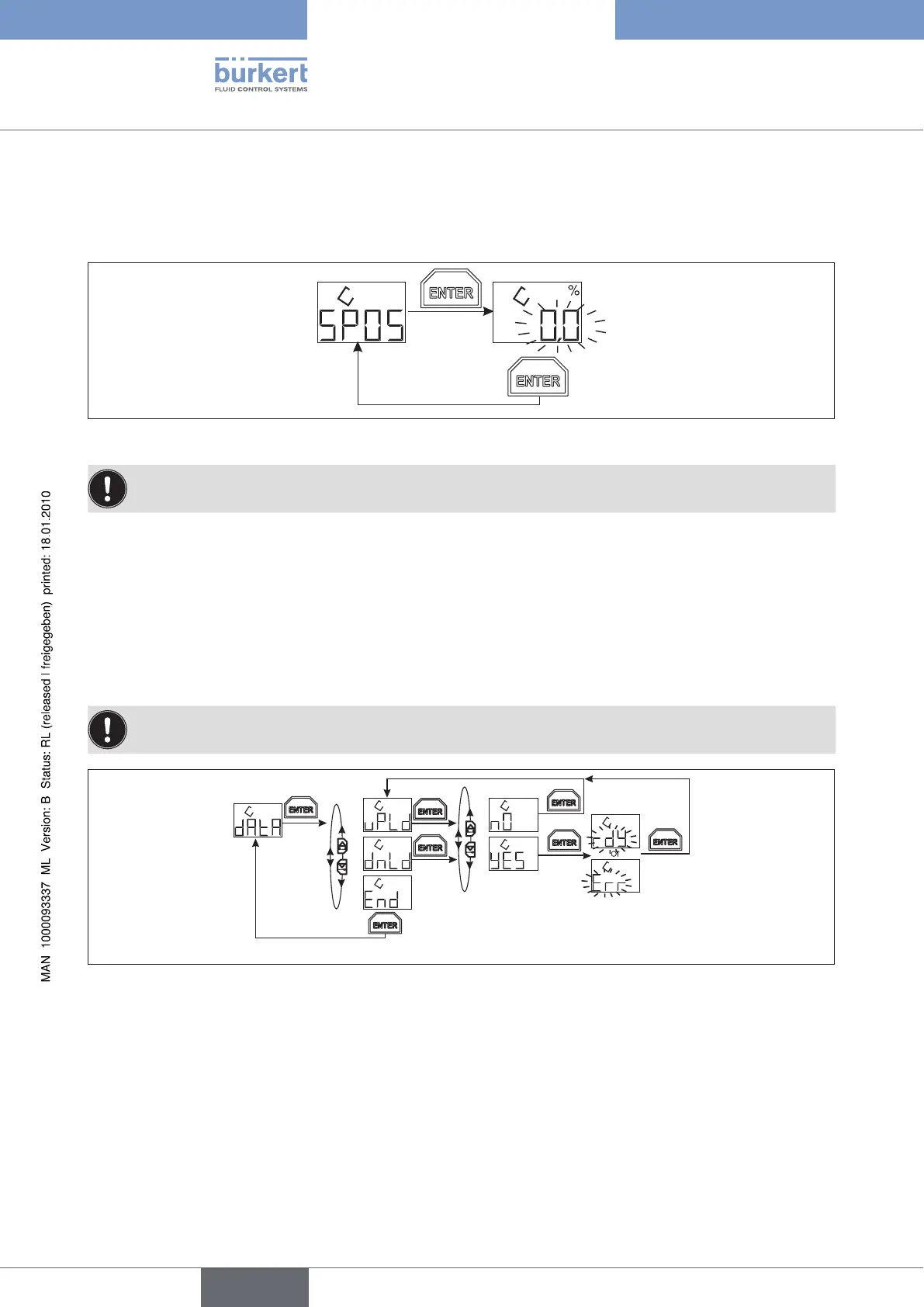 the operating unit displays „rdY“ (ready). If the data transfer failed „Err“ (error) is displayed.