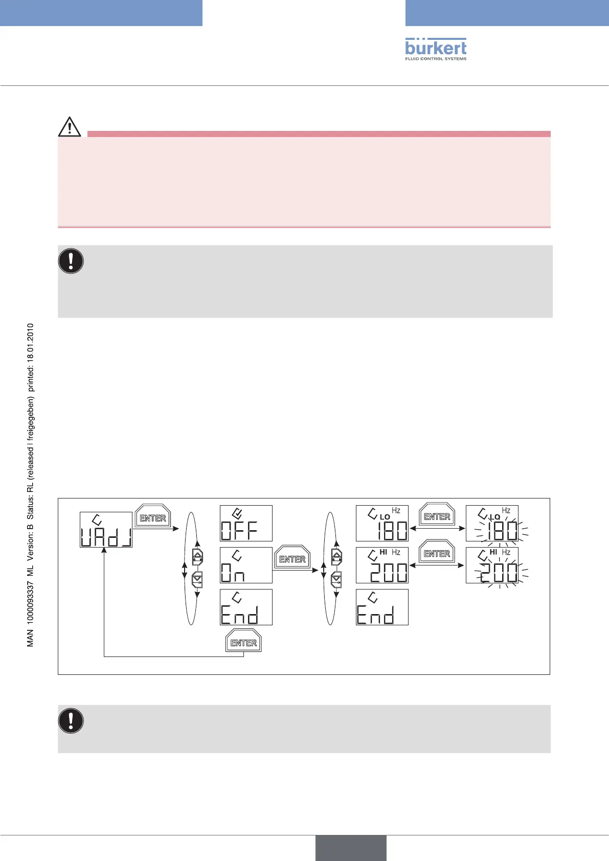 Im Menü VAdJ können die beiden mit der Auswahl des Ventiltyps festgelegten Frequenzen innerhalb bestimmter