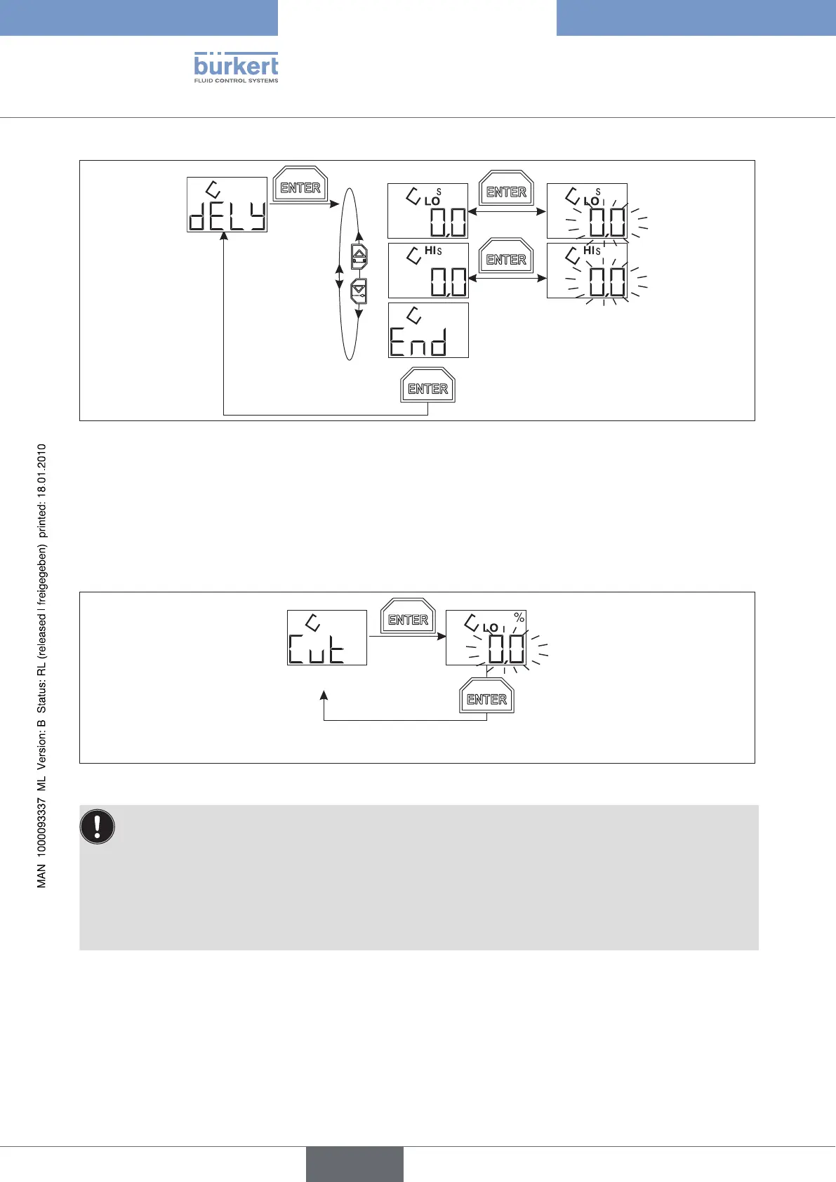 Bei einem eingestellten Wert von 0,0 % ist die Nullpunktabschaltung deaktiviert. Das Ventil wirkt auch •