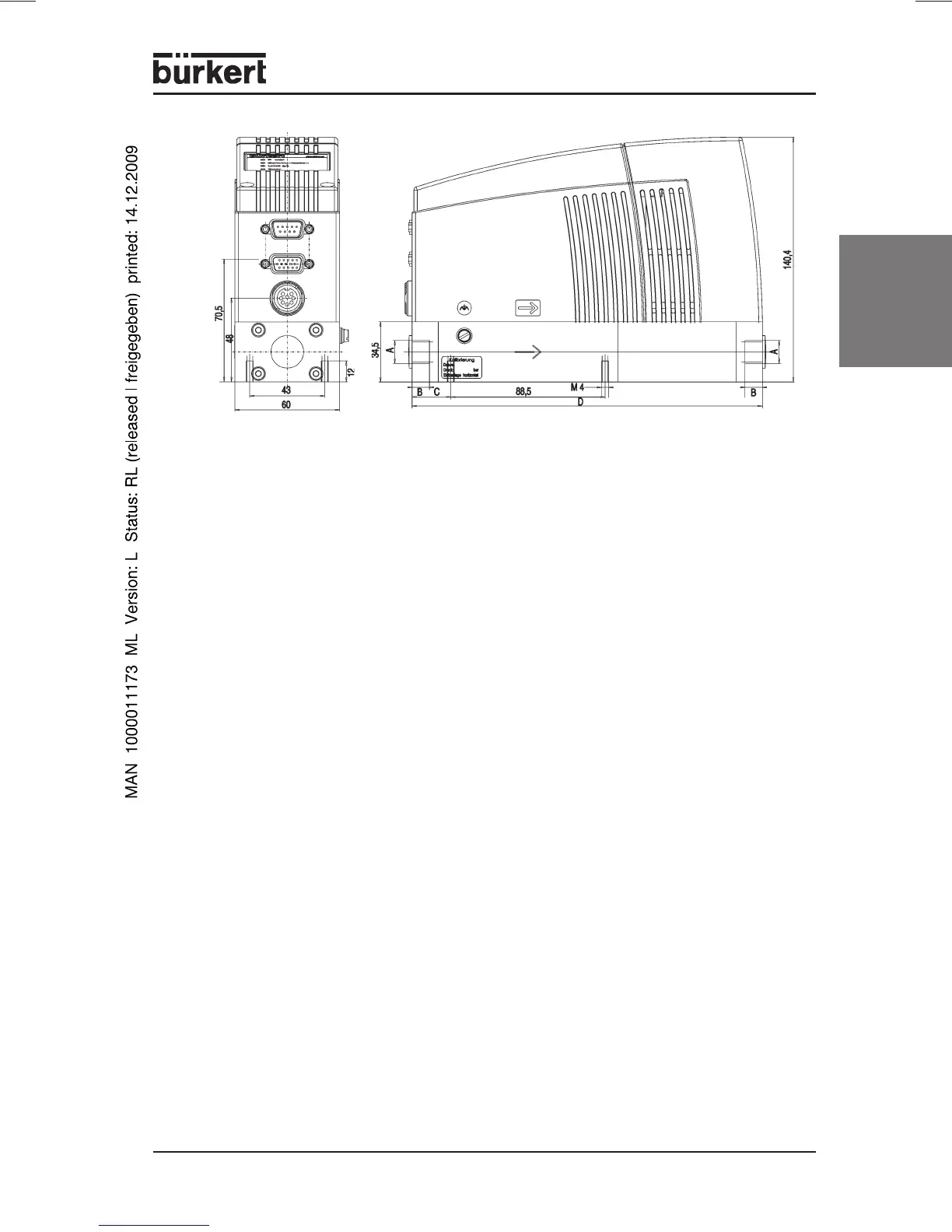 Fig.: Type 8716 / 8706 MASS FLOW INLINE (with standard sensor body)