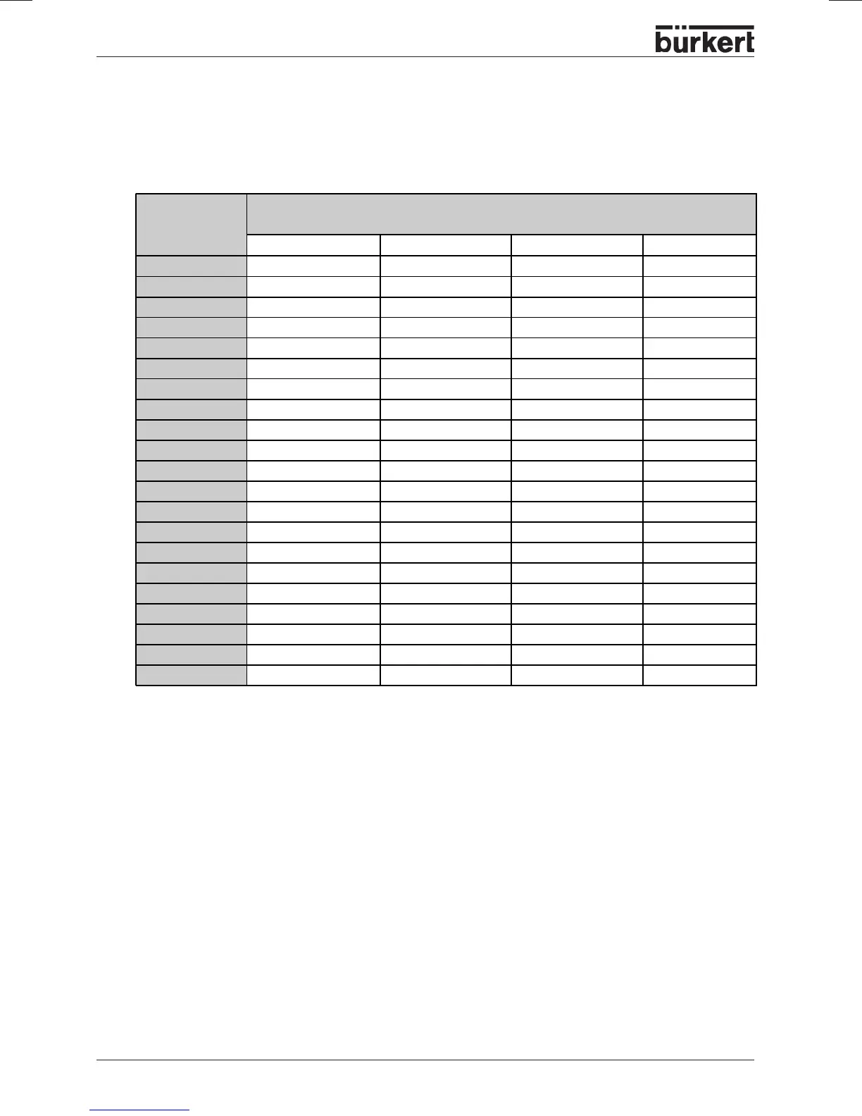 Burkert 8630 - Table for Noting Your Settings on the Positioner