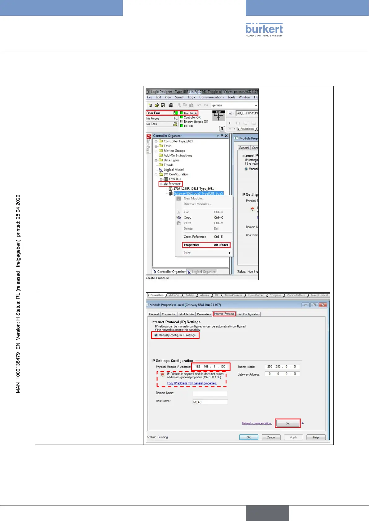 15.15.3 Changing the gateway IP address via Logix Designer