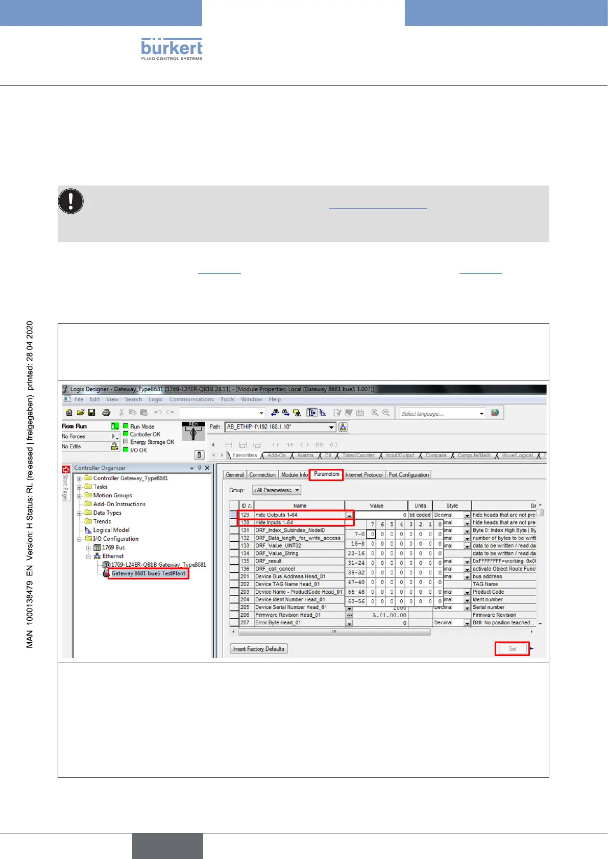 viasoftware“LogixDesigner”(“15.18.1”)orviathe“BürkertCommunicator”Type8920(“15.18.2”).