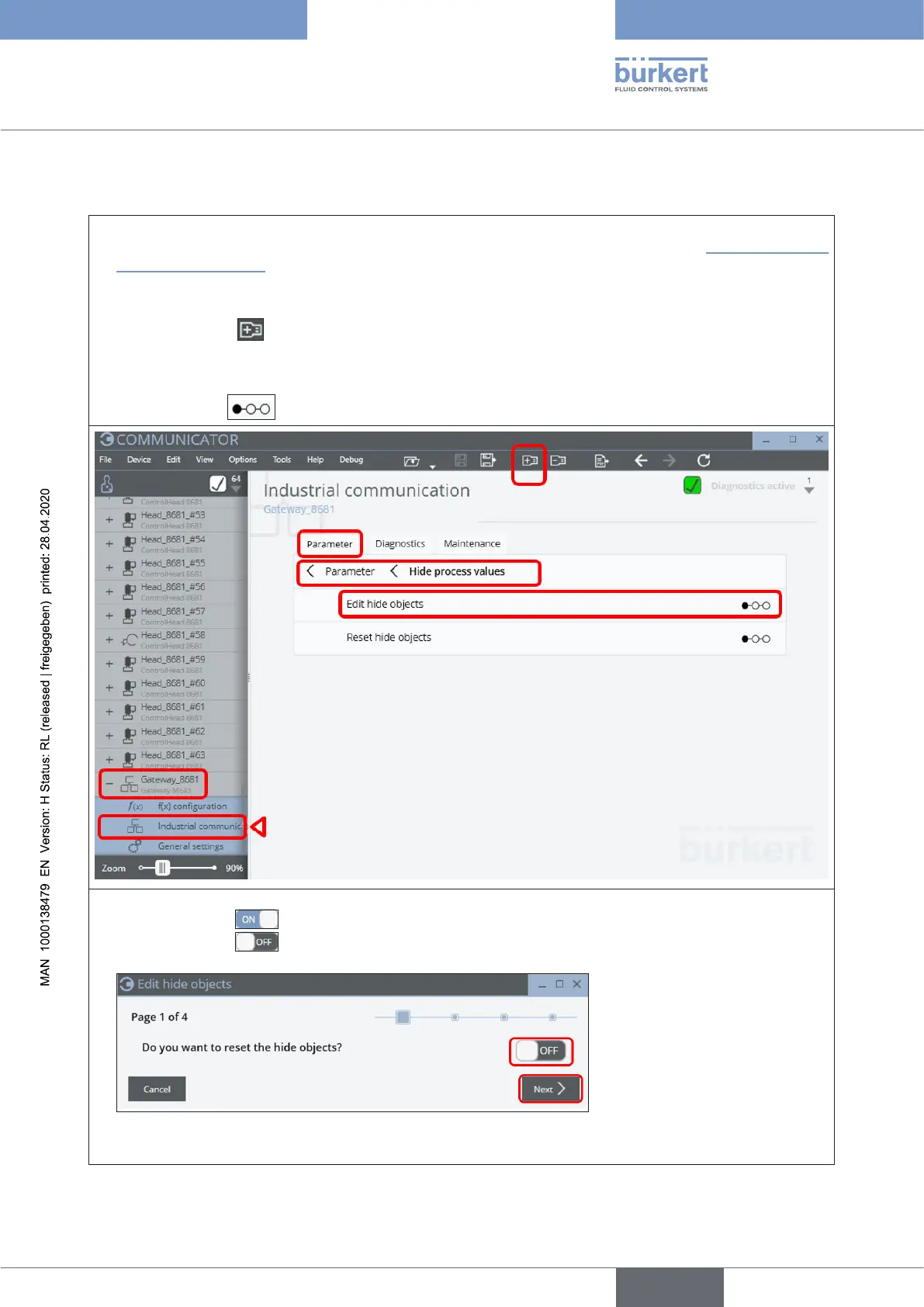 15.18.2 “Hide function” via “Bürkert Communicator”