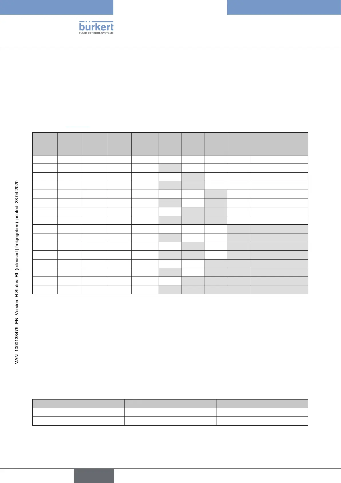 Table 7: Colour combinations / Colour coding of the classic variants and designation of the corresponding device-