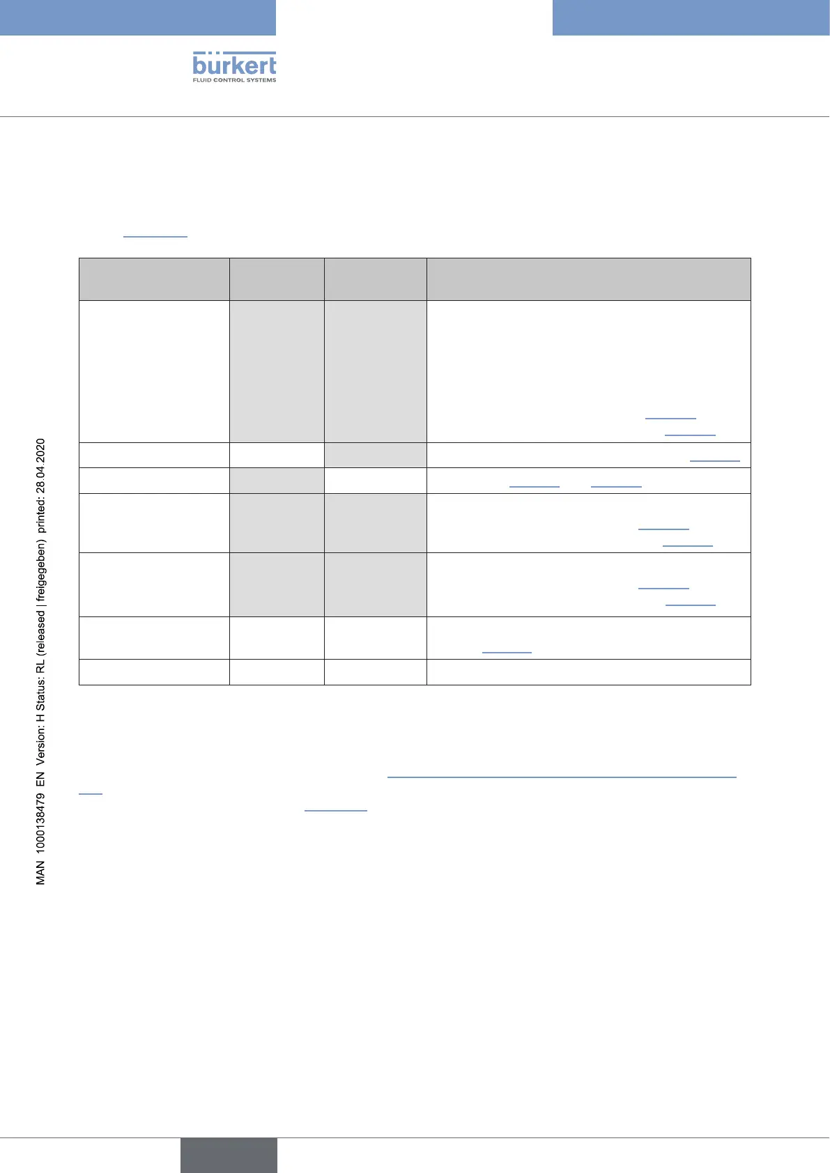 Table 14: Display behaviour of the dierent display modes with regard to position, error, warning