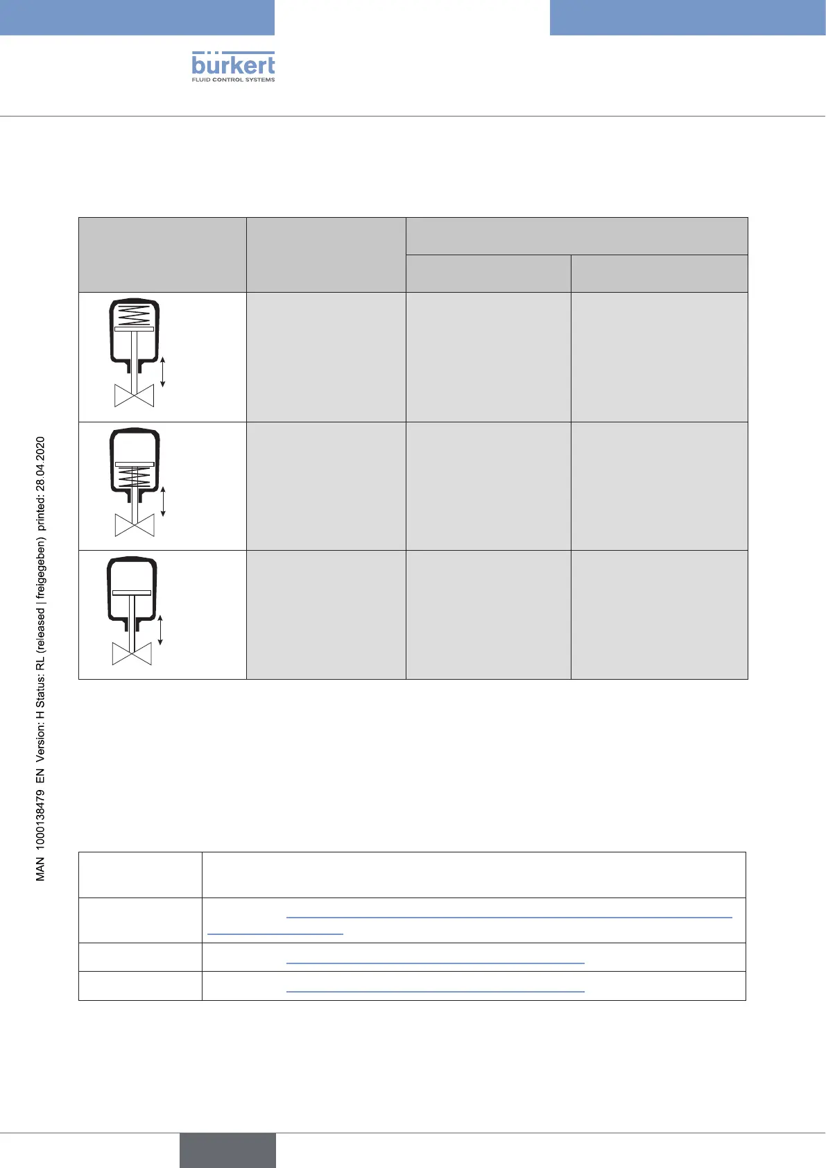 Safety positions of the solenoid valves after failure of the electrical or pneumatic auxiliary power: