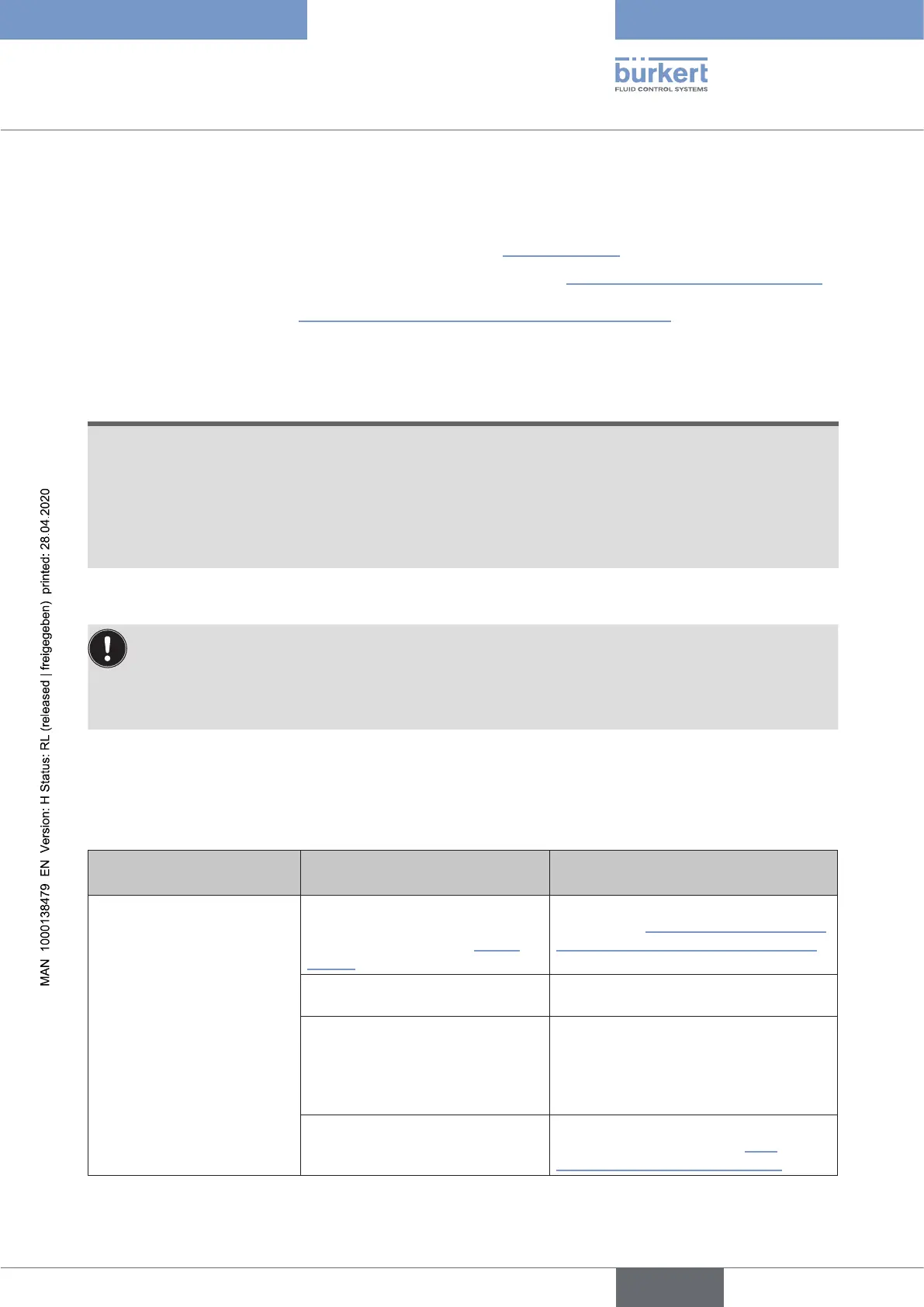 Forservicework,contacttheBürkertSalesCenter(chapter“4.1”onpage14).