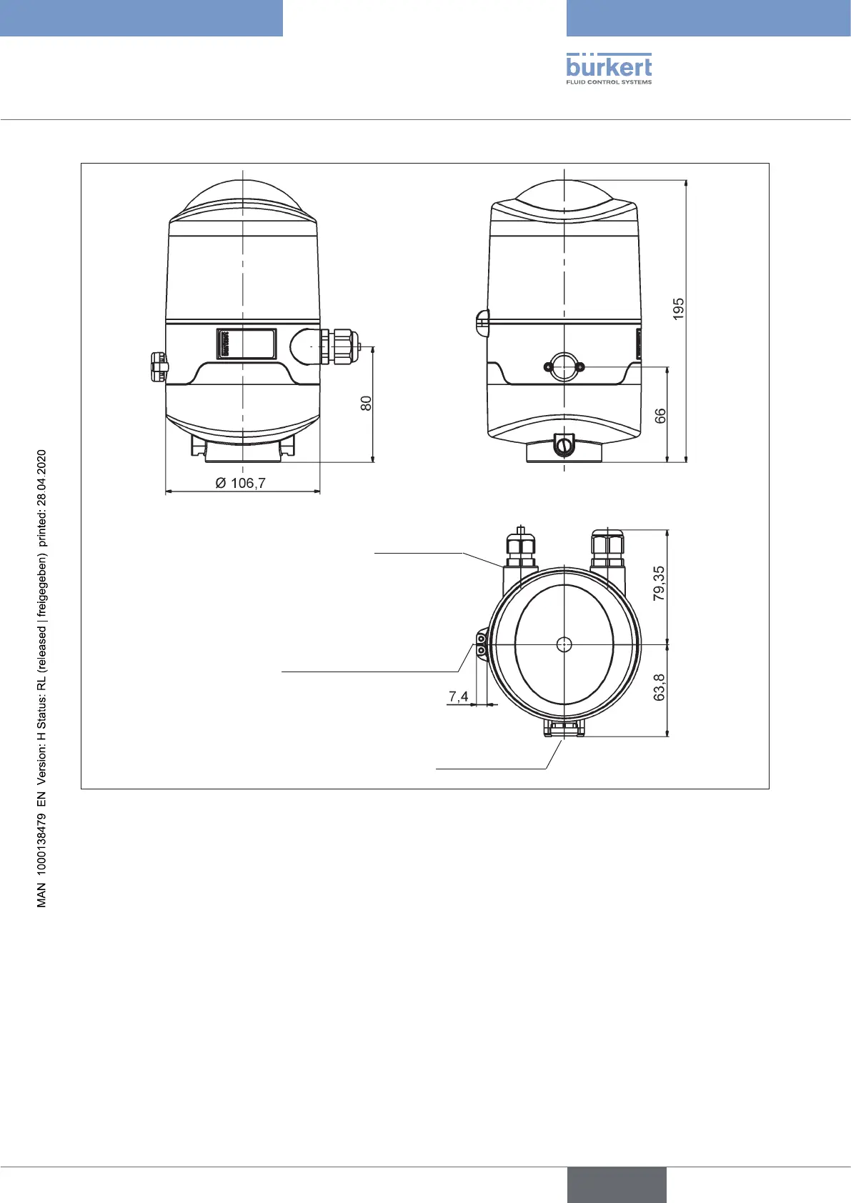 Fig. 5: Dimensional drawing (for models without solenoid valves = feedback top)