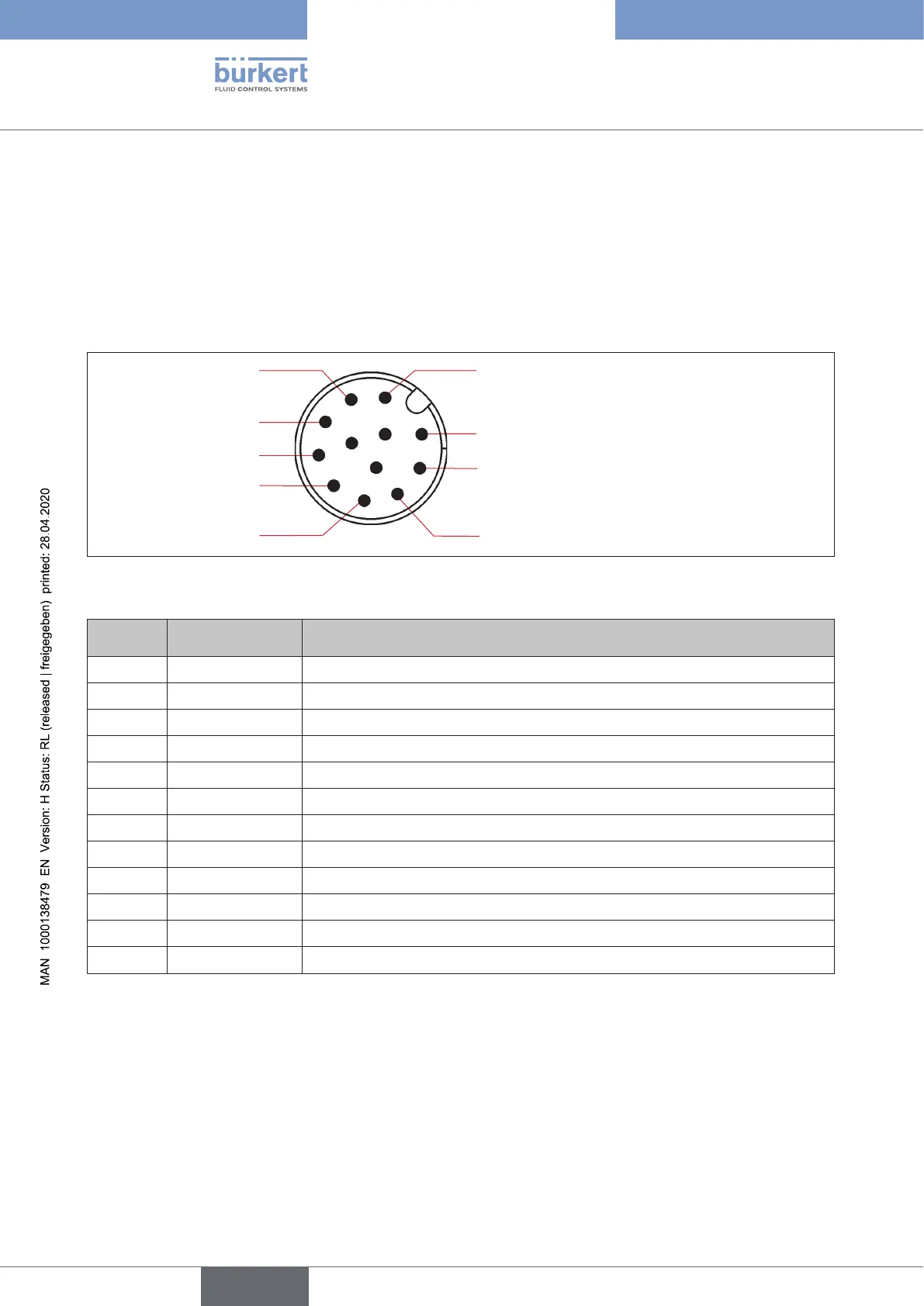 Fig. 17: 12-pole multi-pole connection (view onto the plug pins)