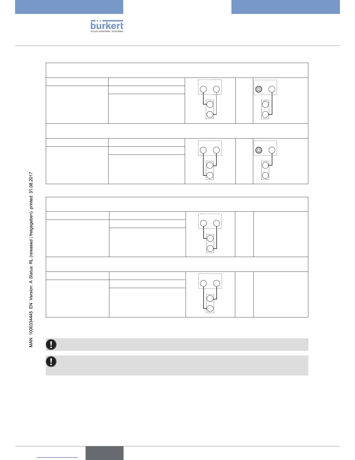Table 2: Pneumatically connecting device and actuator CFA and CFB
