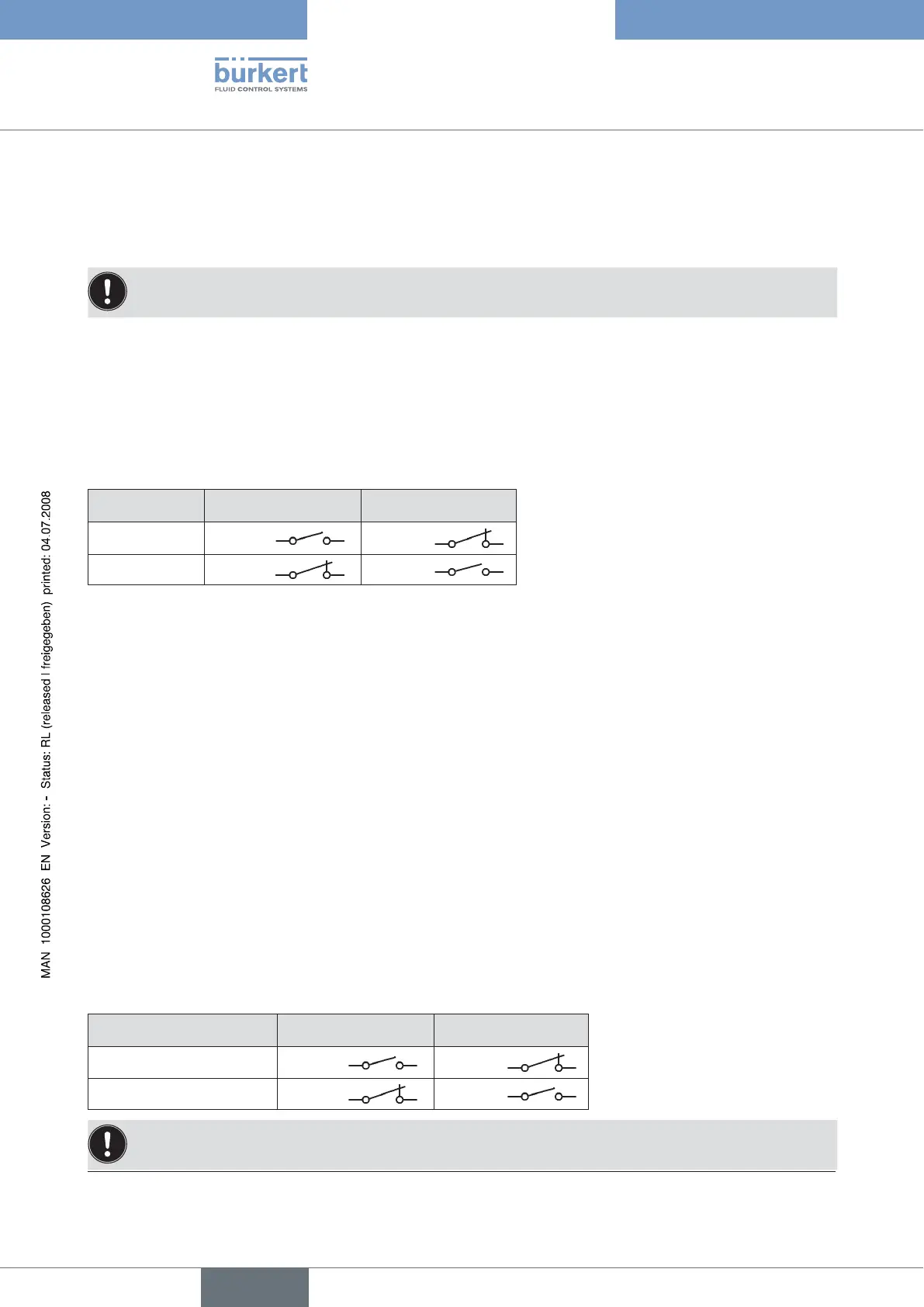In the → OUT BIN type menu option input the required switching status (normally opened / normally closed).